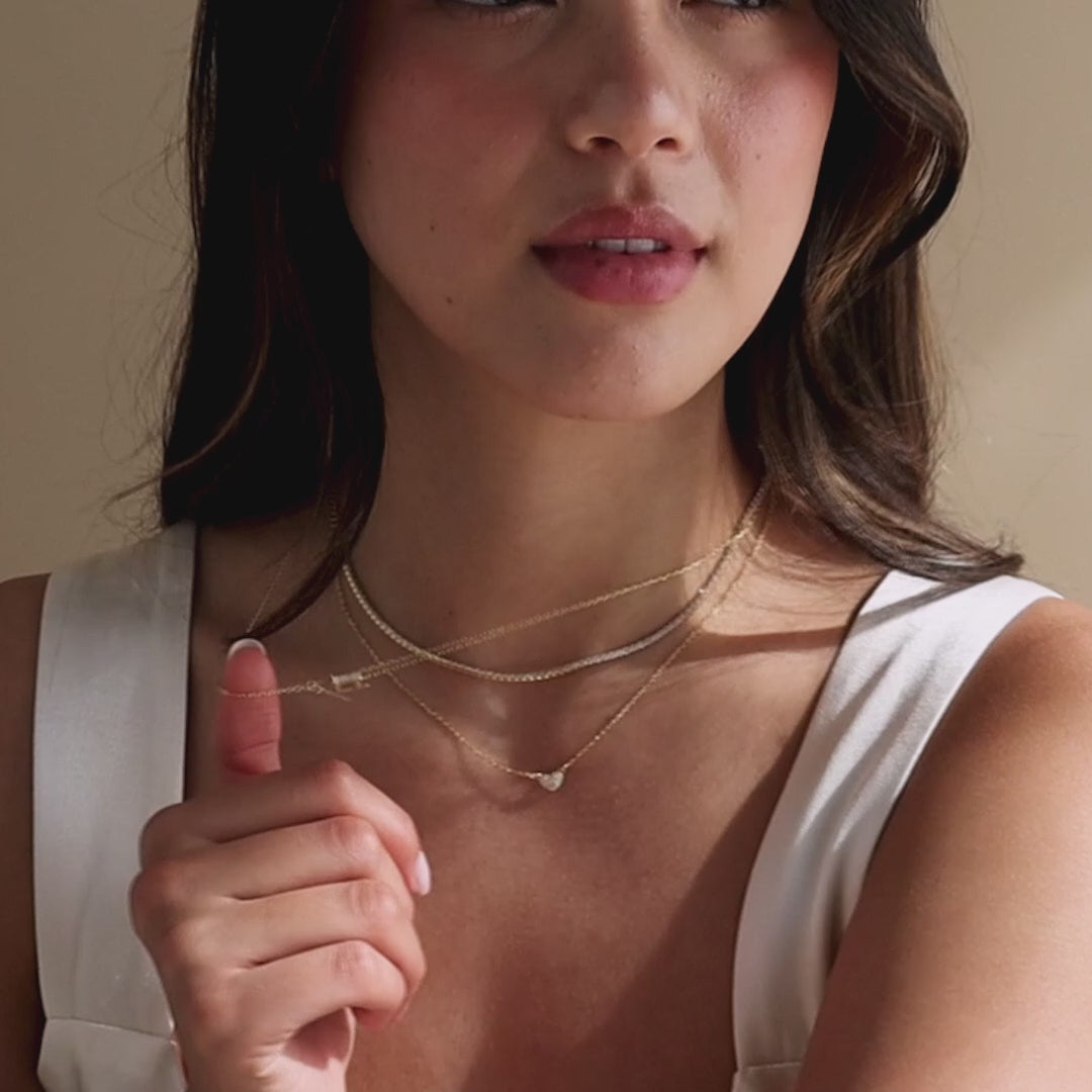 Introducing our Mini Pave Sideways Initial Necklace, the diamond-adorned counterpart to our best-selling Sideways Initial Necklace ✨ With its pave diamond gemstones, this necklace offers a shining upgrade to our signature piece, adding a touch of sparkle and sophistication to your everyday look. Personalize your style with the letter of your choice, perfect for adding a unique and glamorous touch to any outfit!
