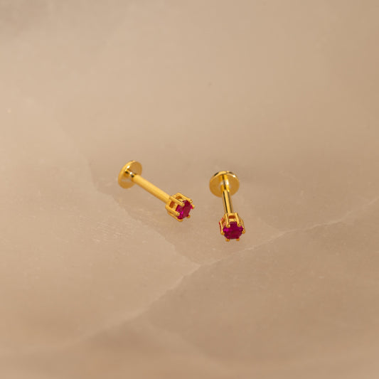 Bezel Heart Birthstone Studs -