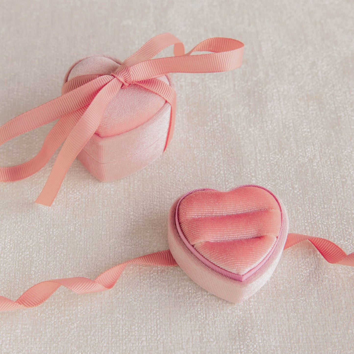 Love is in the air! Give someone you love something special in our Pink Velvet Heart Ring Box. Soft and dreamy with a coquette style, this jewelry case can hold up to two rings. Finishing with a delicate pink bow to tie around the ring box, you will have a gift that is set and ready to give.