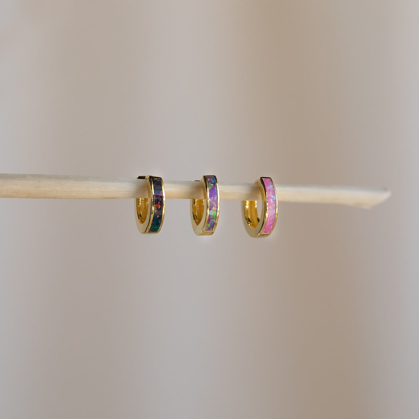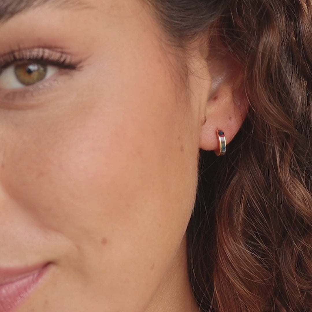Eleve su colección de joyas de todos los días incorporando nuestros Huggies con incrustaciones de ópalo negro para darle un toque de audacia e individualidad. Estos aretes tipo argolla, adornados con cautivadores tonos de ópalo negro, sirven como una opción de regalo excepcional para alguien igualmente extraordinario y único ♡
