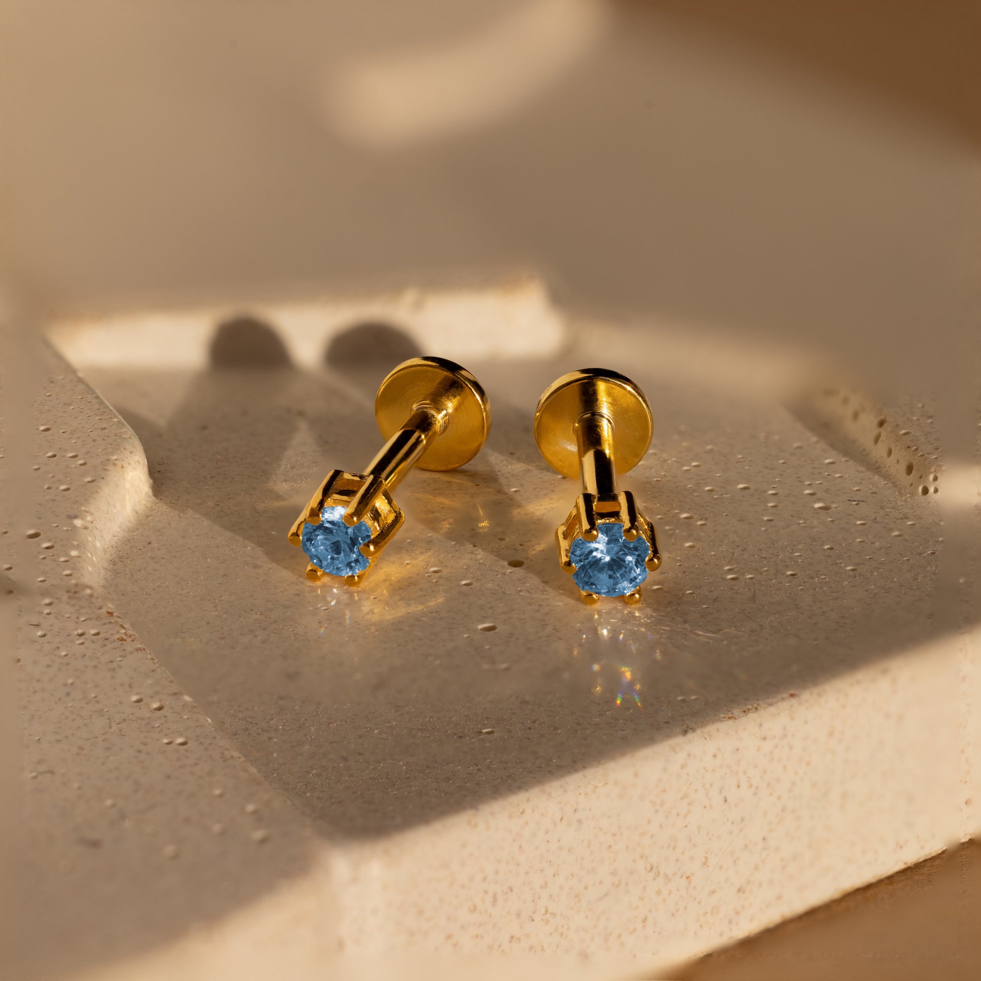 • Dimension: 4mm CZ Blue Zircon Birthstone | 7mm Post | 19 Gauge