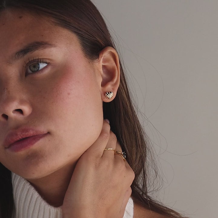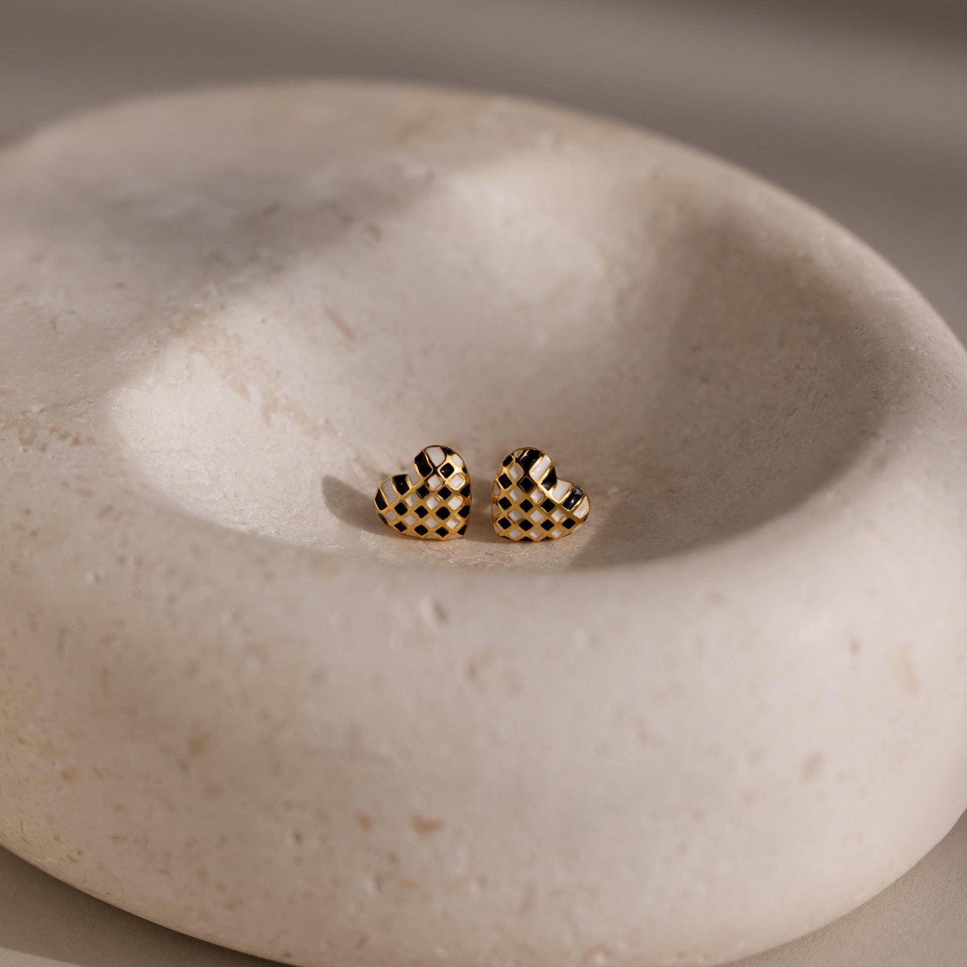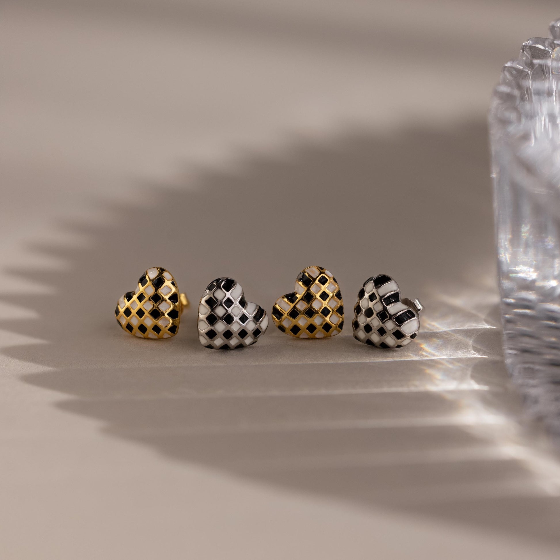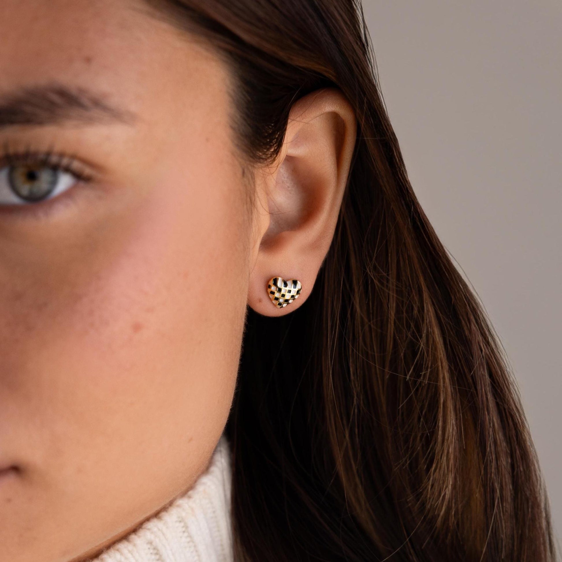 Bold, playful, and a little bit edgy, our Checkered Heart Stud Earrings are the perfect mix of sweet and spicy. Featuring a black and white checkered pattern, these heart-shaped studs add a fun, retro-inspired touch to any look!