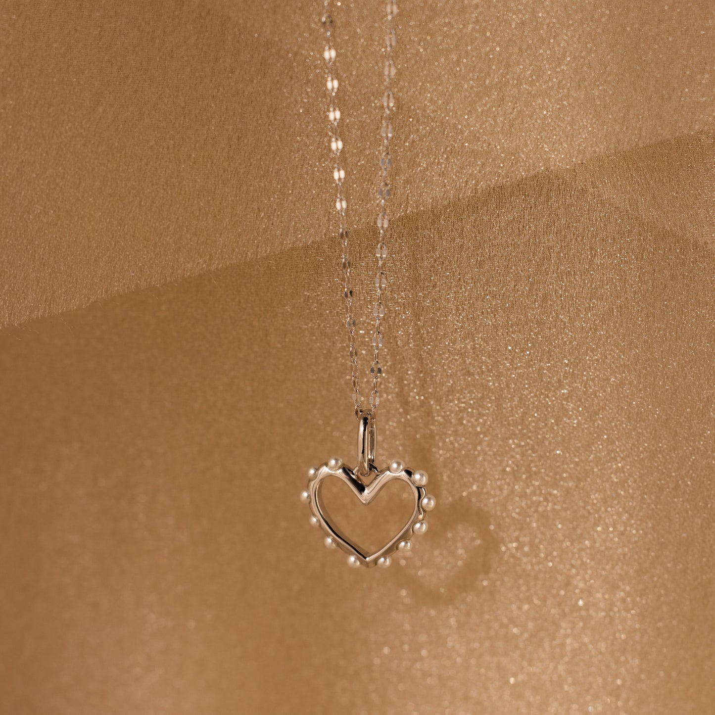 Embrace timeless romance with our Classic Pearl Heart Charm. Featuring a delicate heart design with pearl beads around it, this pendant is perfect for wearing alone or adding to a charm necklace for an effortlessly elegant touch ♡