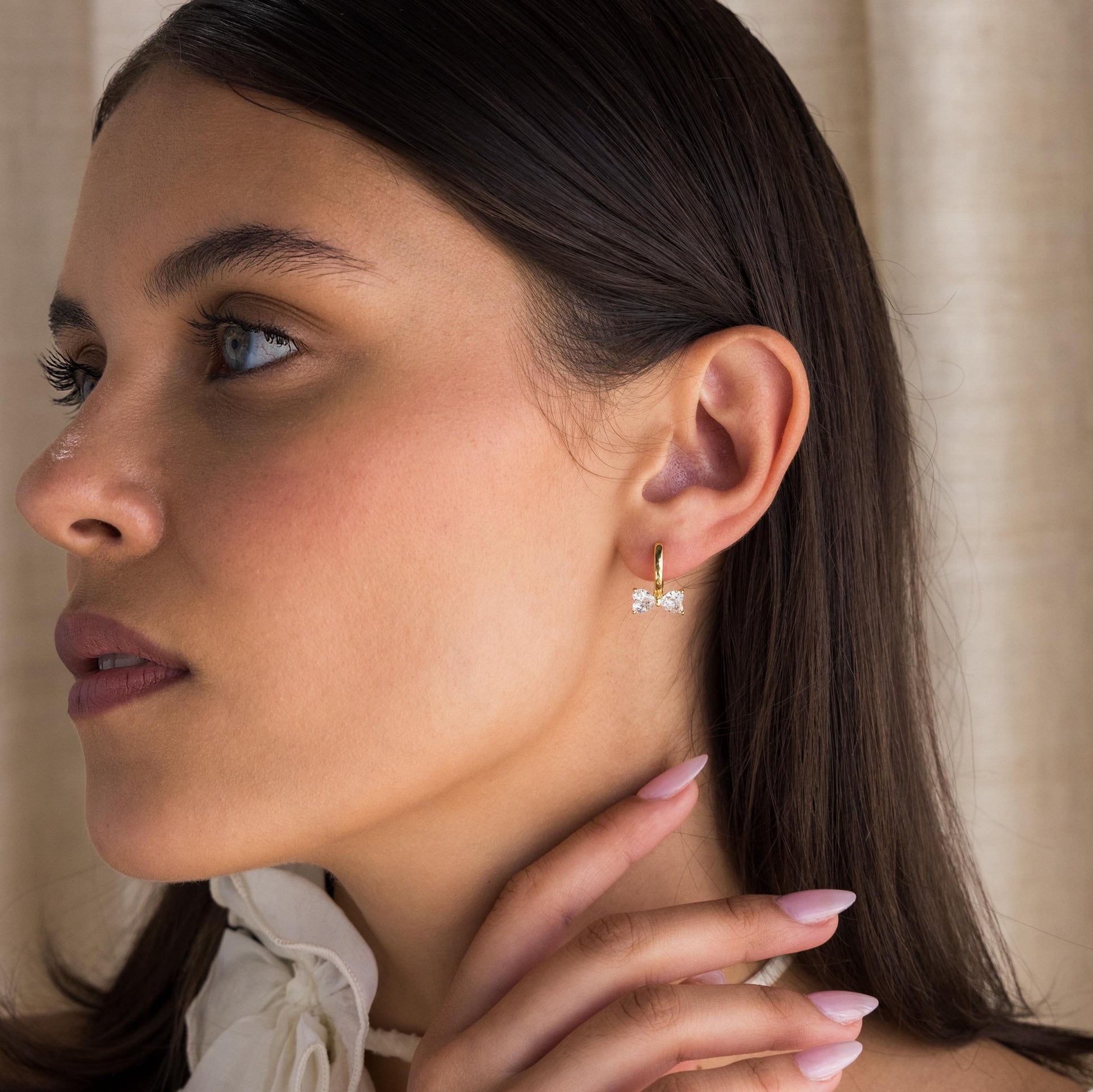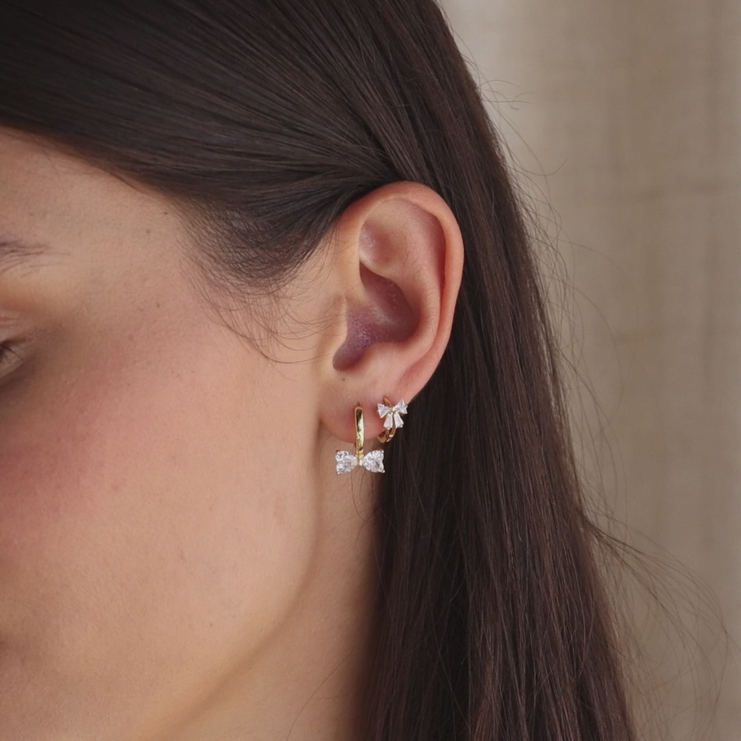• Featuring ~2mm wide Huggie Hoop Earrings with a ~5.5x11mm CZ Diamond Bow Charm