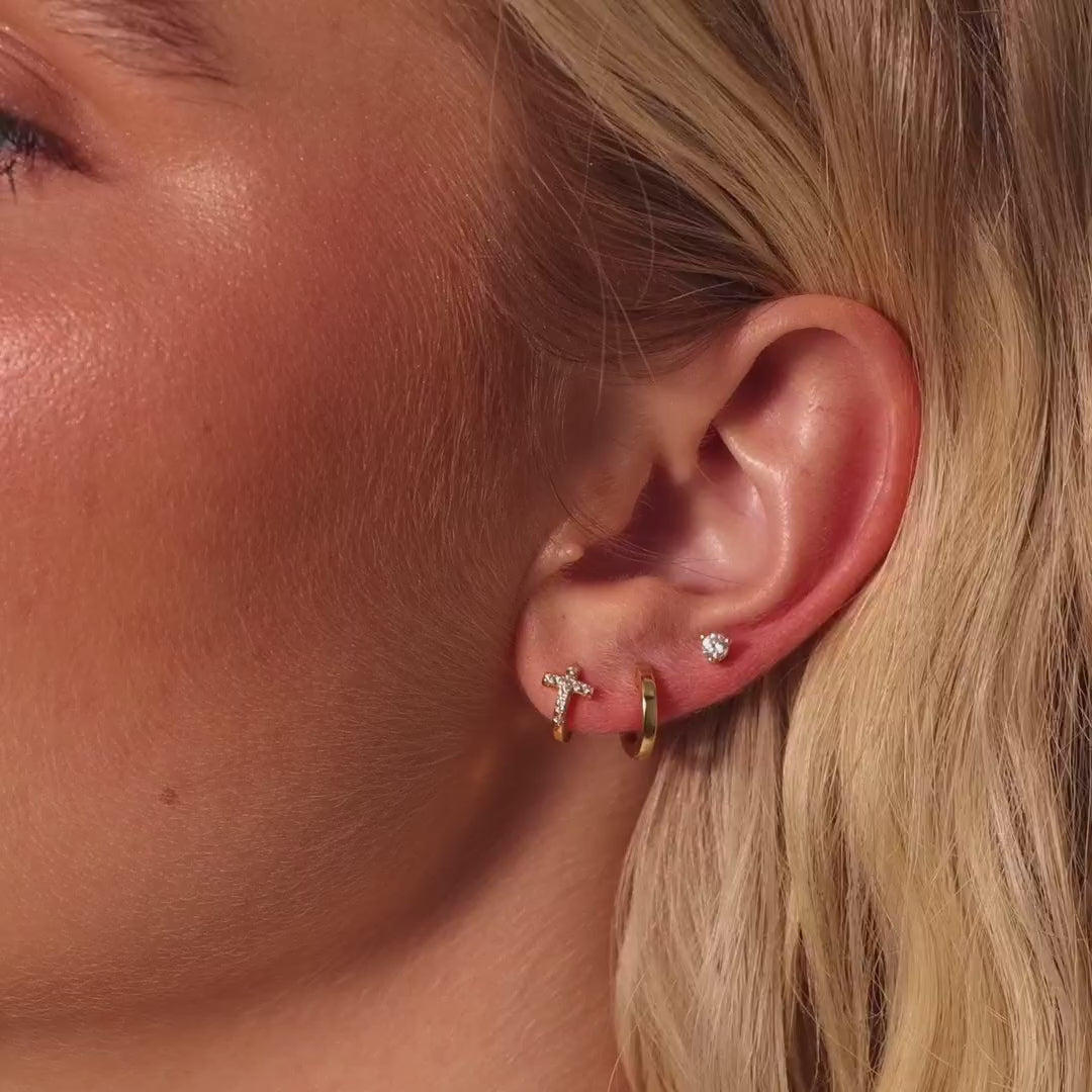 Timeless with a hint of glamour, our Diamond Cross Huggies are designed to sparkle with every movement. The delicate cross charms are adorned with shimmering pavé stones, balancing elegance and everyday wearability. Lightweight and versatile, they’re made to become your go-to signature pair.