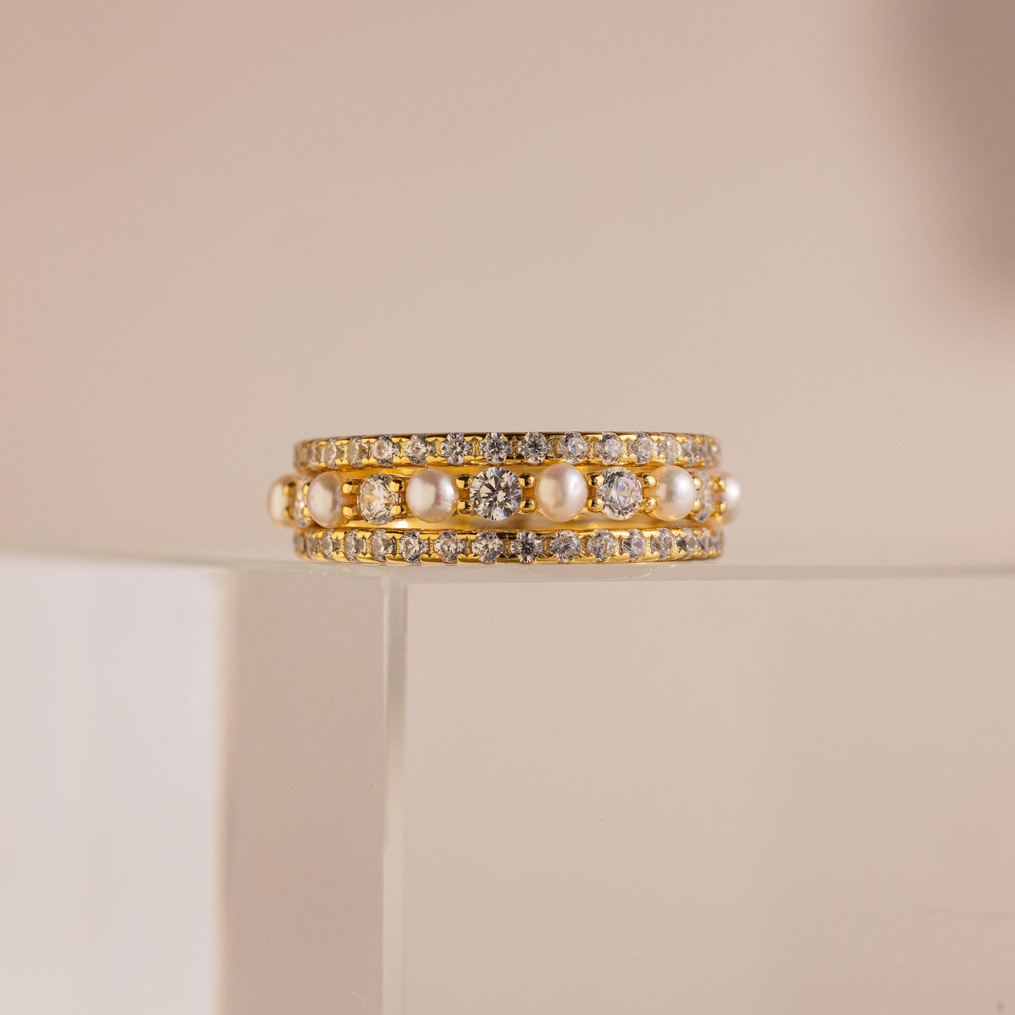 Our Diamond Eternity Ring Set helps you shine with effortless glow. With three sparkling diamond bands, one featuring luminous pearls, it’s the perfect mix of classic and modern. Wear them stacked or solo for a touch of everyday magic (or as a subtle nod to your wedding era ♡