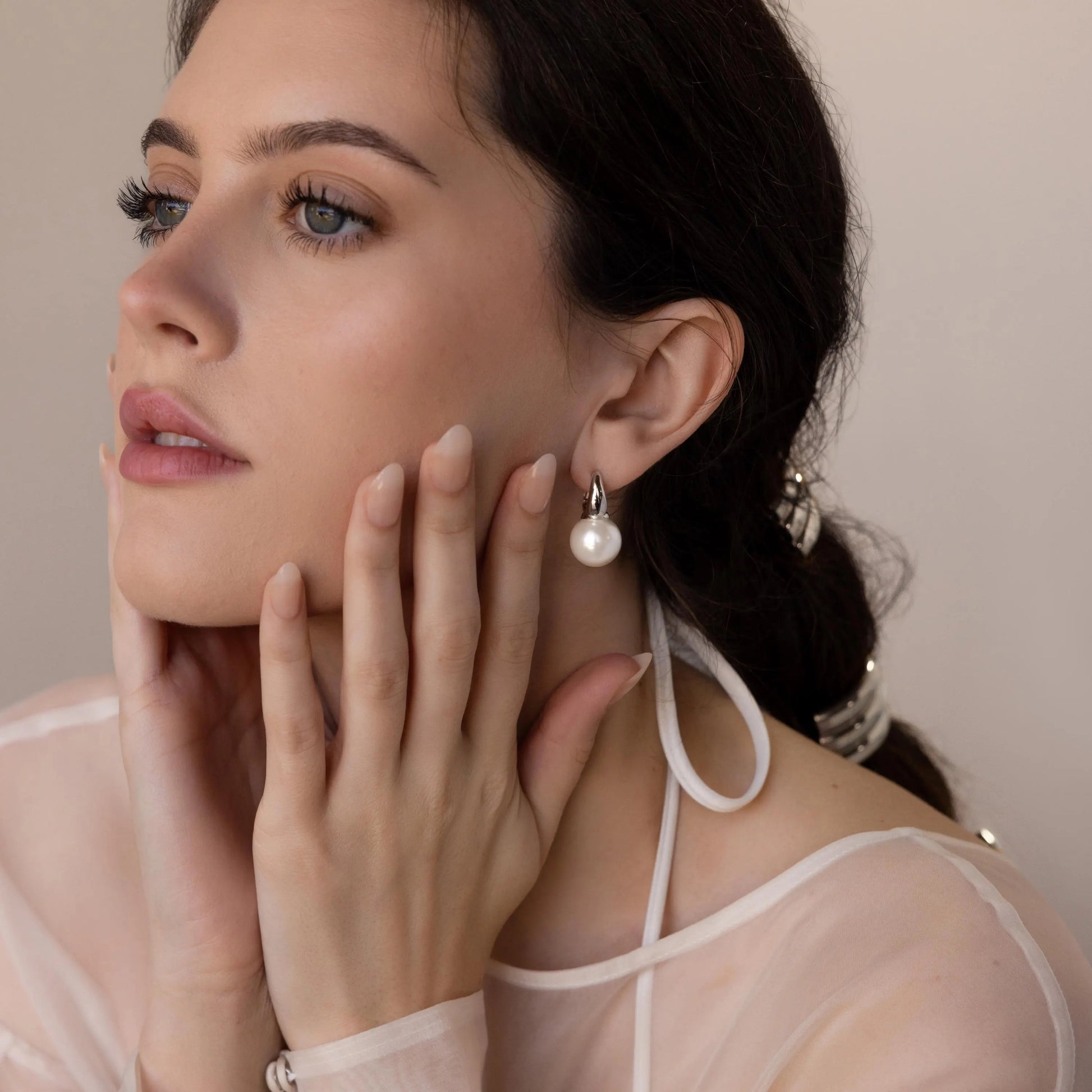 Crafted for both style and comfort, our Dome Pearl Huggies are easy to wear while still making a statement. From morning meetings to evening soirees, these hoop earrings hug the earlobe perfectly and provide an elegant Pearl gemstone to add a touch of sophistication.