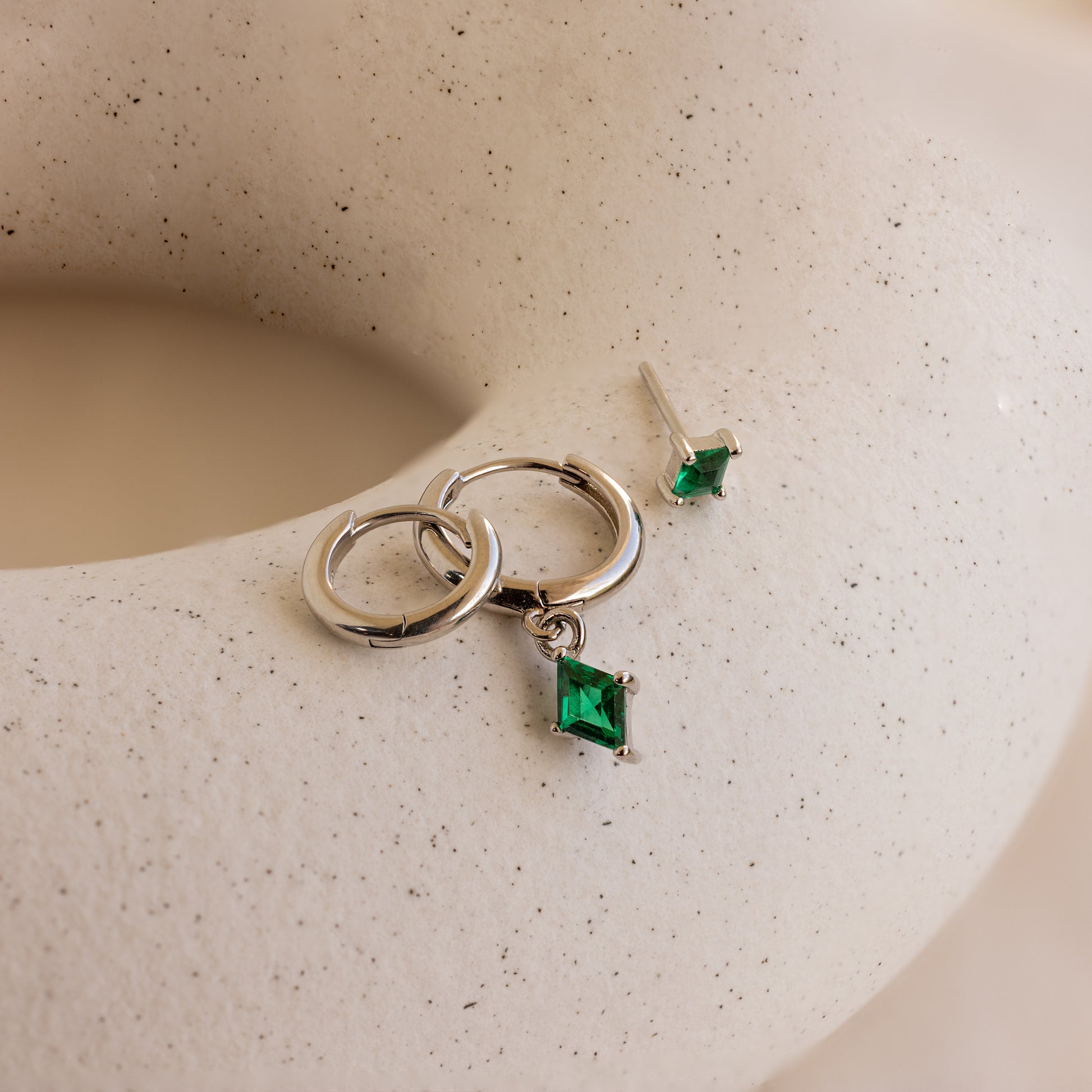 - Incluye un juego de 3 aretes con piedras preciosas de circonita esmeralda con talla de diamante: