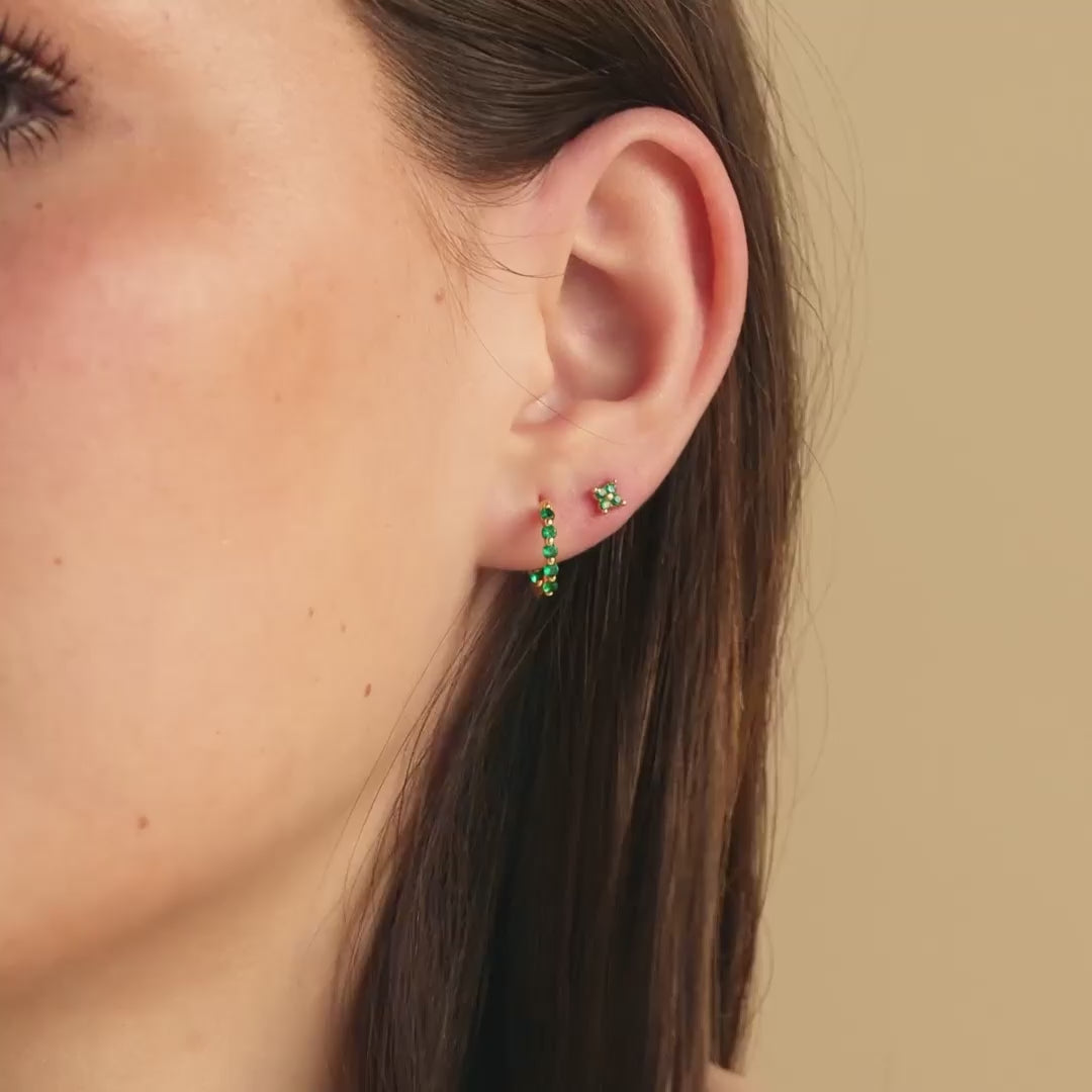• Featuring ~5mm Emerald CZ Flower Stud Earrings with ~1.5mm gemstones