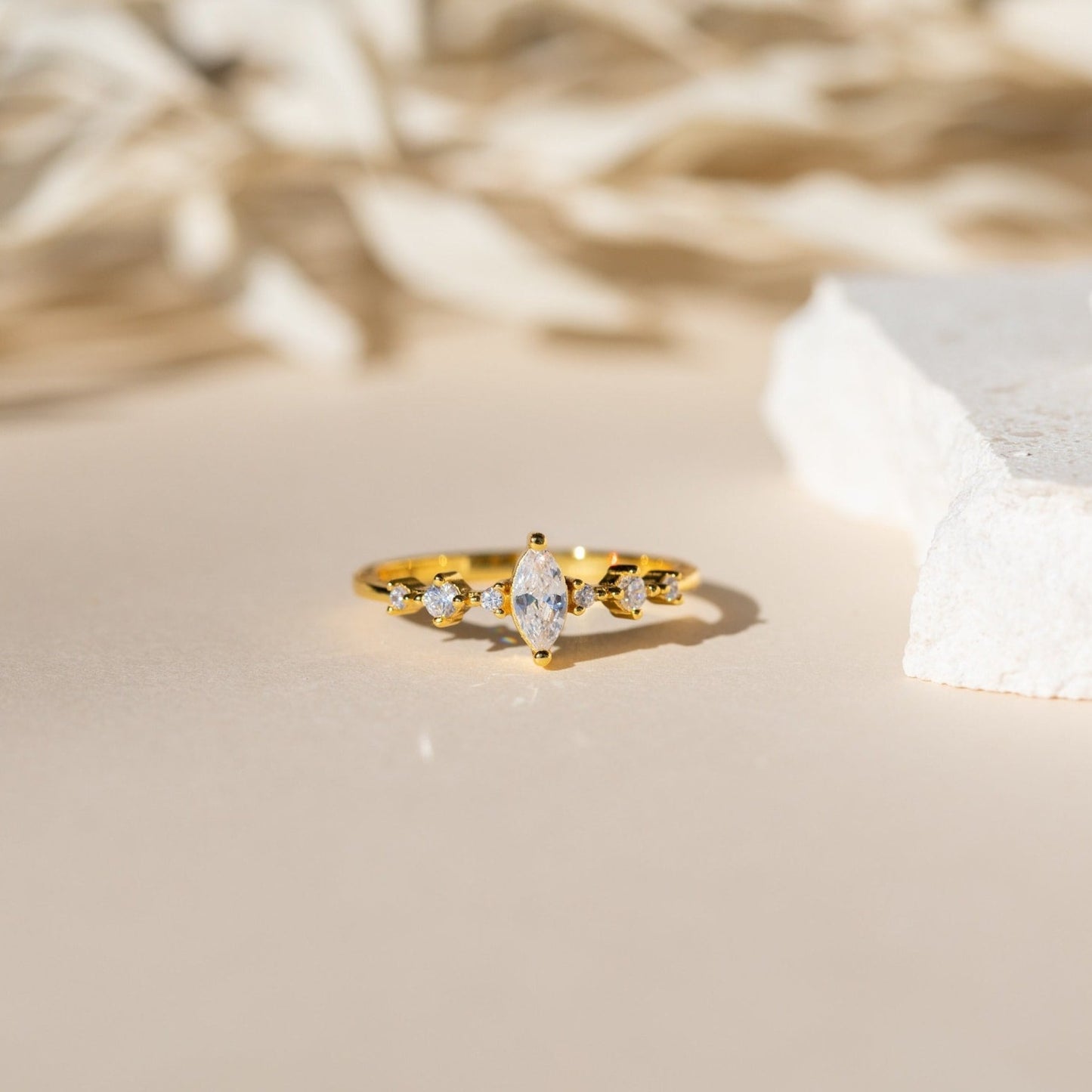 • Stone: 7mm Marquise CZ Diamond, 2mm-3mm Round CZ Diamonds