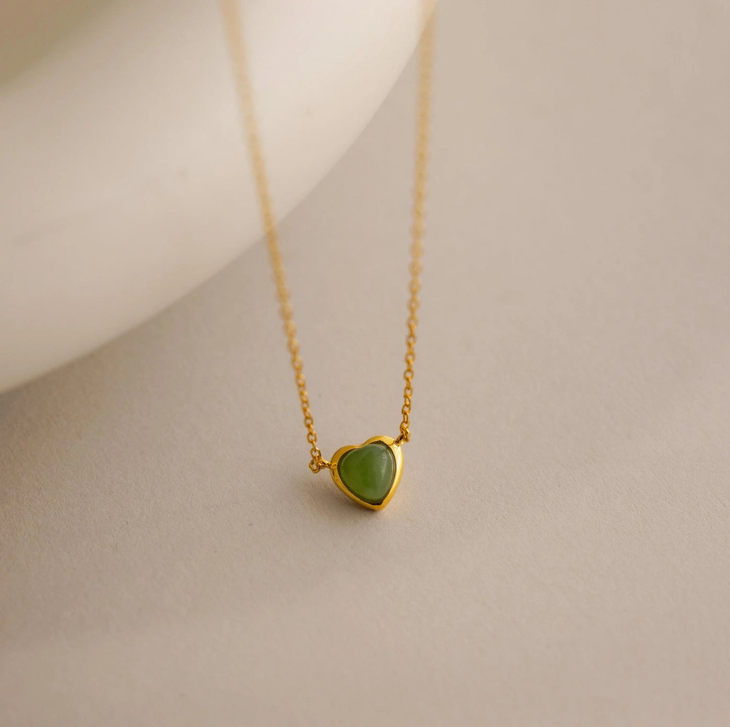 Add a touch of romance your look with our Jade Heart Charm Necklace! With its lush green glow and charming heart shape, this necklace is sure to add a little love and luck to any jewelry collection ♡