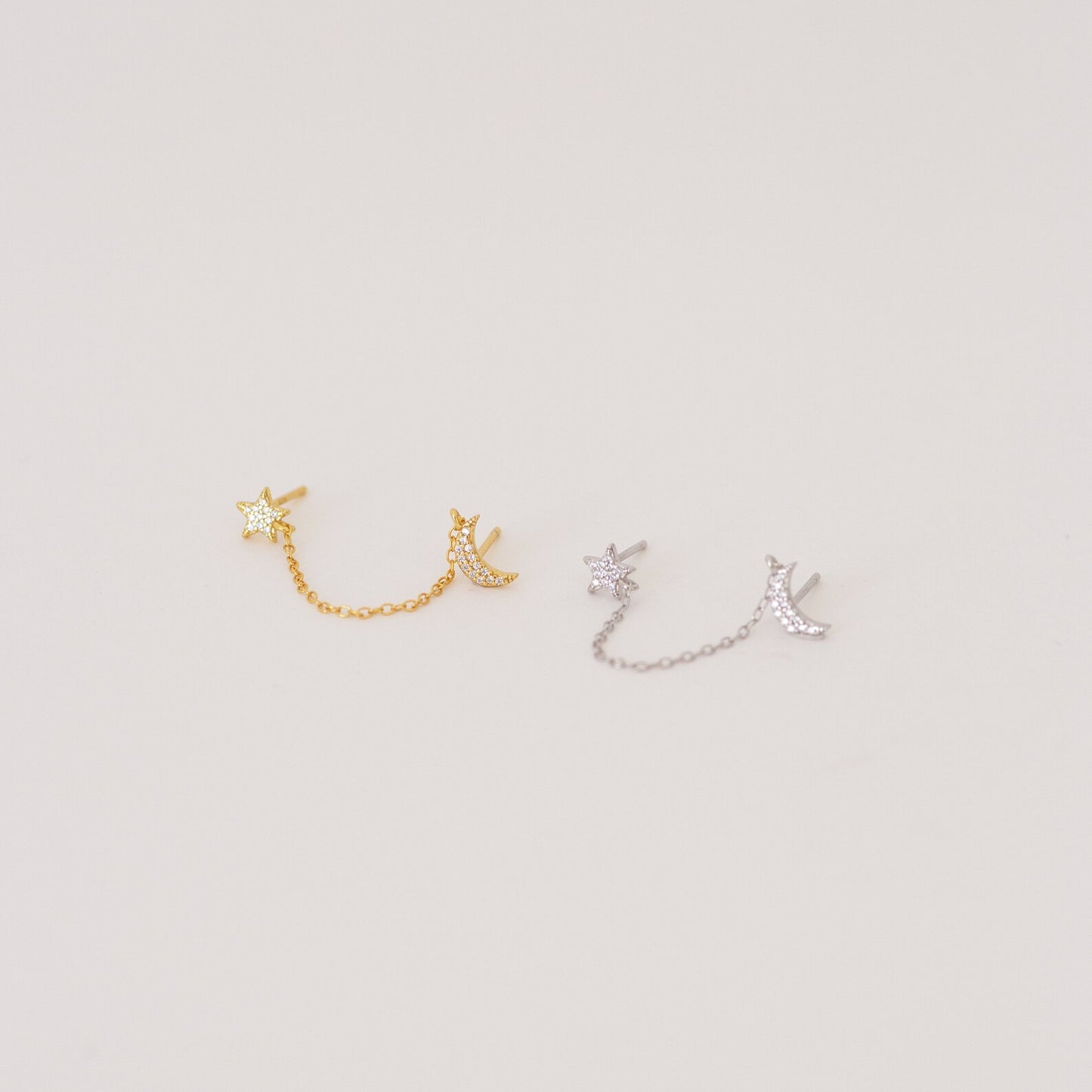 • Featuring ~6mm Star and ~9mm Moon Chain Earrings | Total Chain length: ~40mm