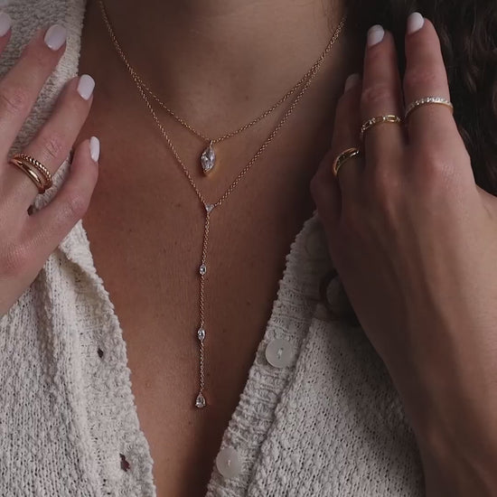 Effortless sparkle with a free-spirited touch. Our Mixed Diamond Lariat Necklace drapes itself elegantly on your chest, featuring a cascade of diamond gemstones in a mix of shapes and cuts. Light-catching and endlessly radiant, it's your perfect piece for sunlit days and starry nights ✨
