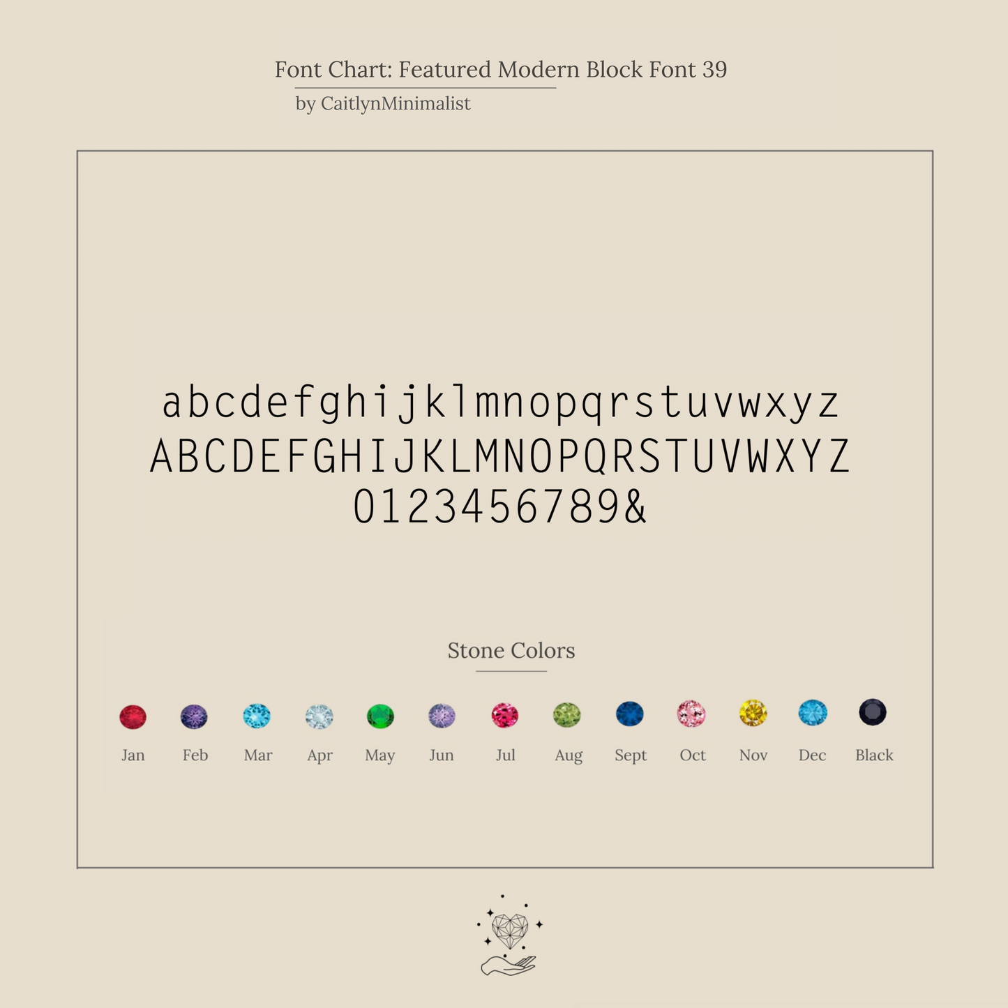 • Dimensiones: Altura de la letra de 4 mm | banda de 1 mm | Piedra preciosa de circonita cúbica de 2 mm.
