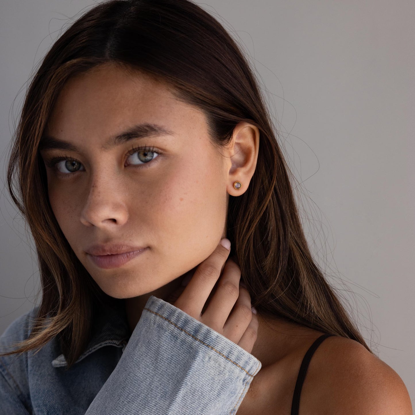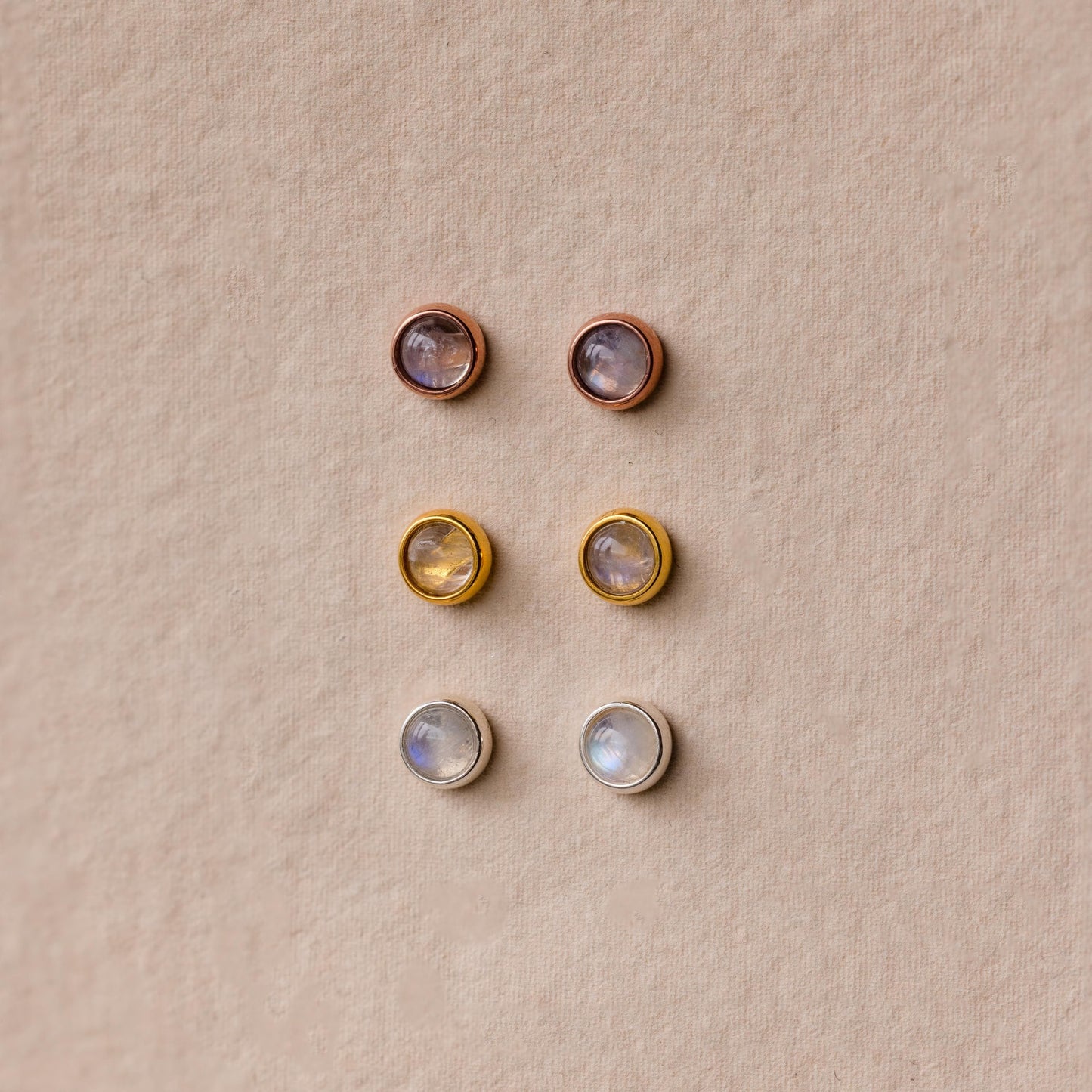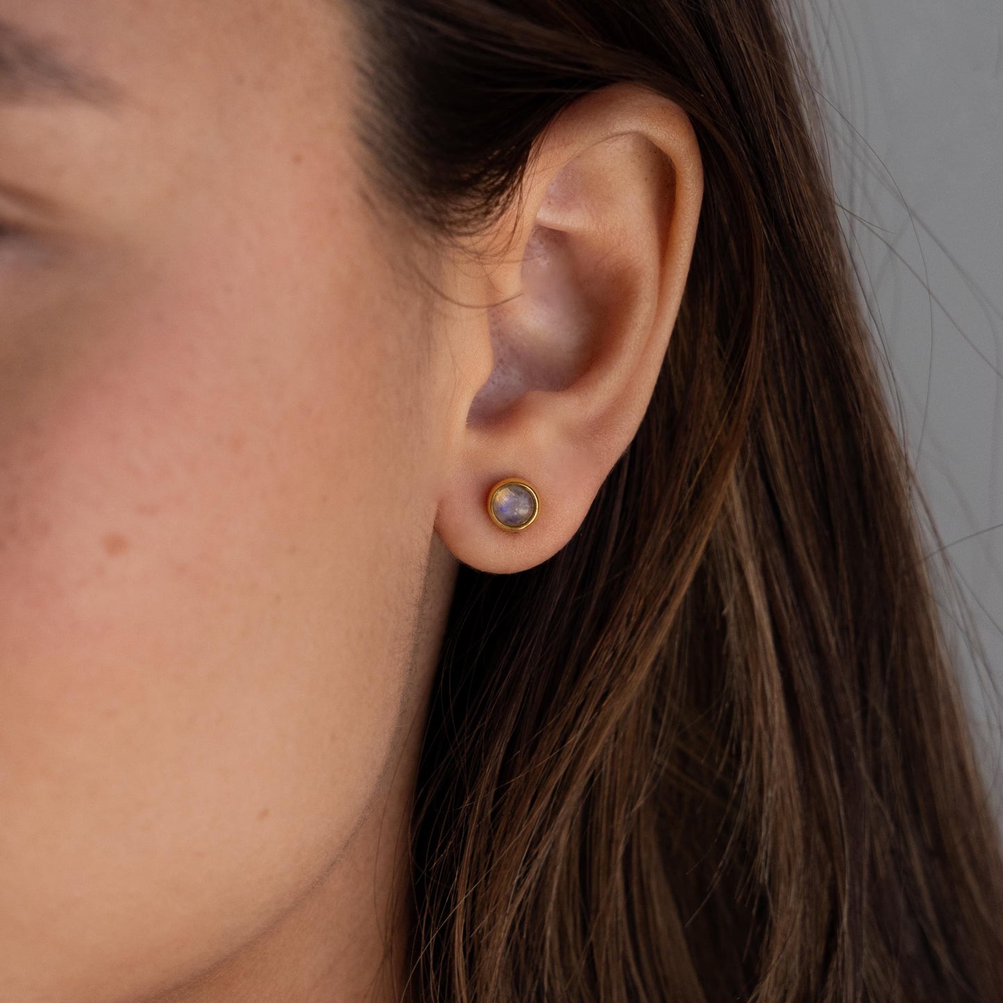 Our Moonstone Bezel Studs are the perfect touch of ethereal elegance. They're simple, luminous, and just understated enough for an effortless look, making them ideal pieces to be worn at any time.
