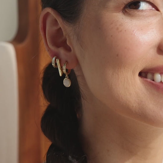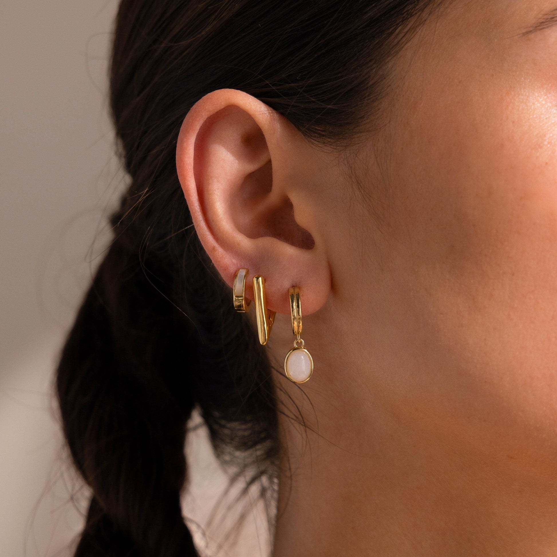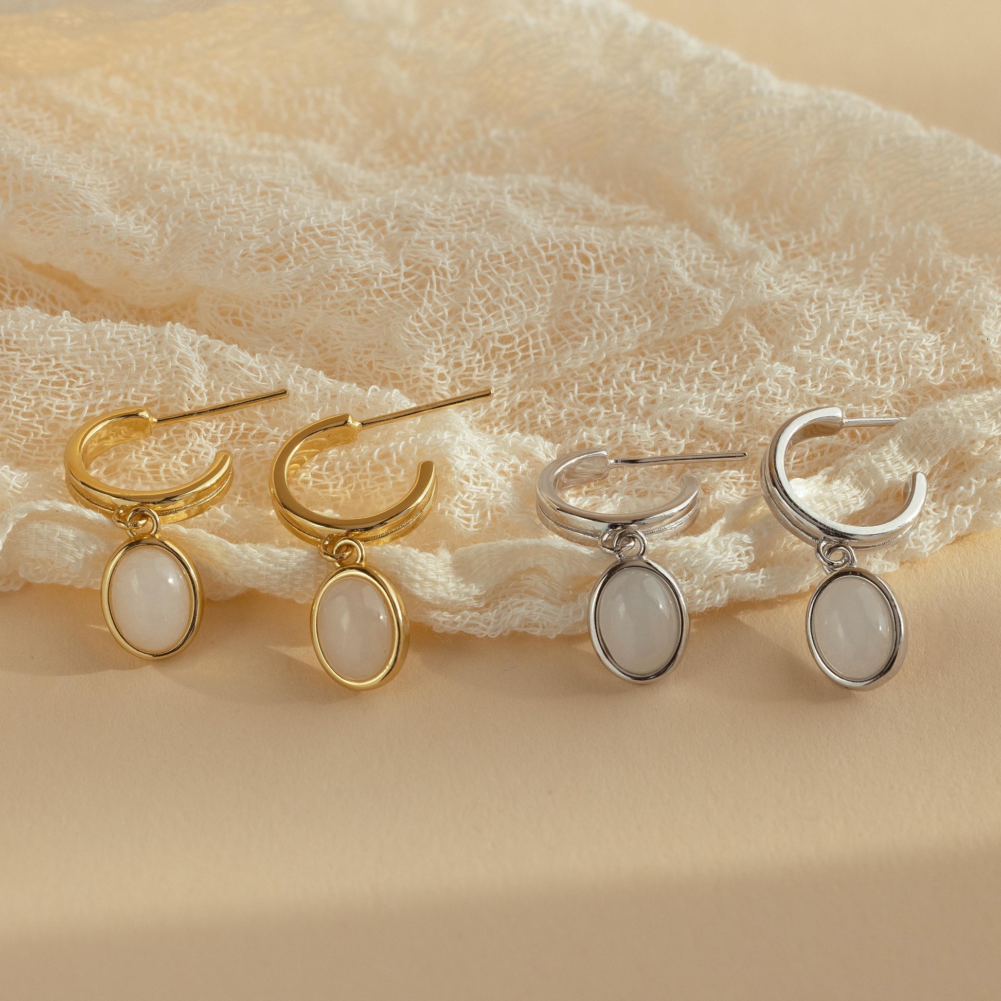 They look just like the picture. The only thing that I didn't expect, but it's still fine, is that the hoops are not latched. Instead, it's like 3/4 of a hoop that has a backing. I have small ears, so you can tell that it's not a full hoop. But they still look really cute on.