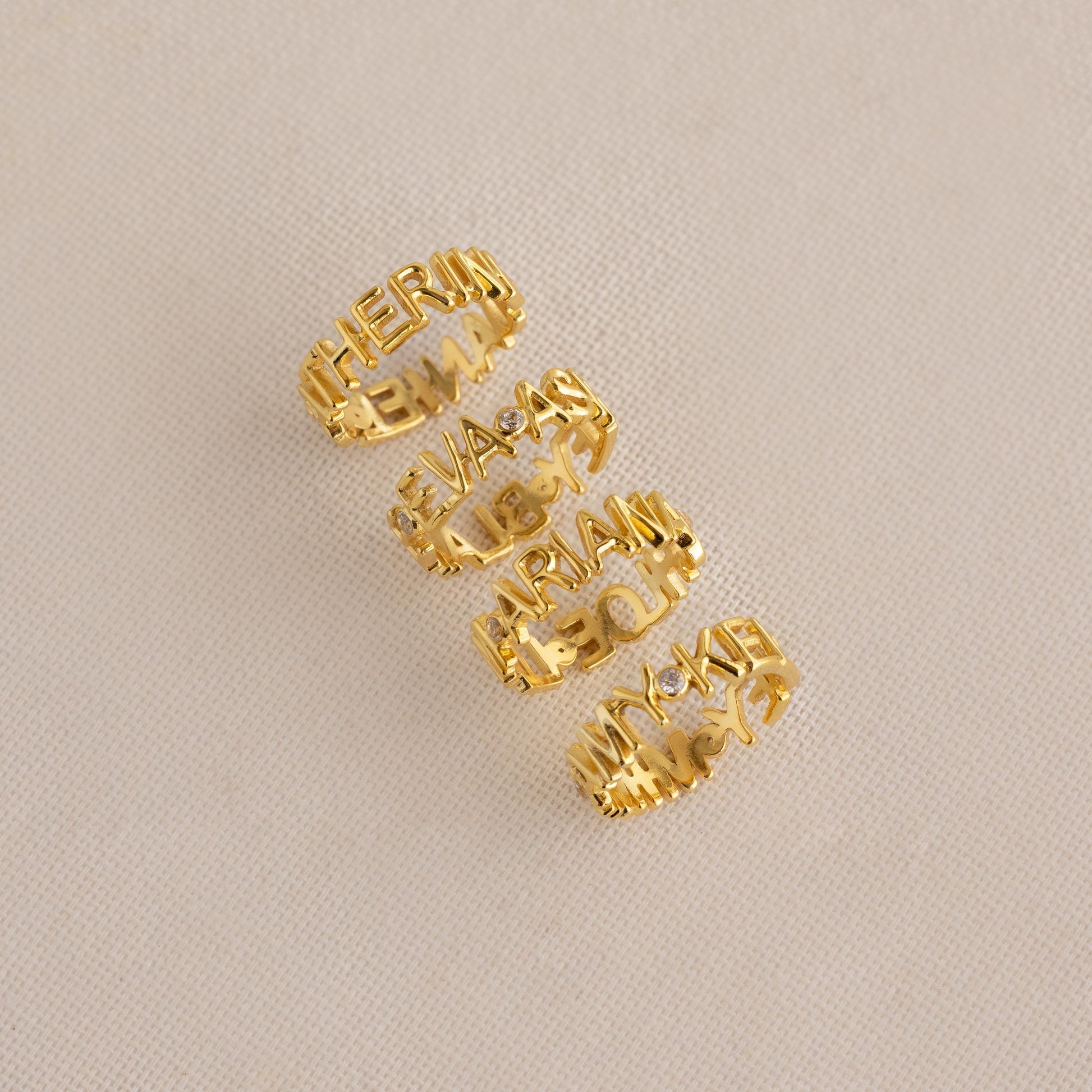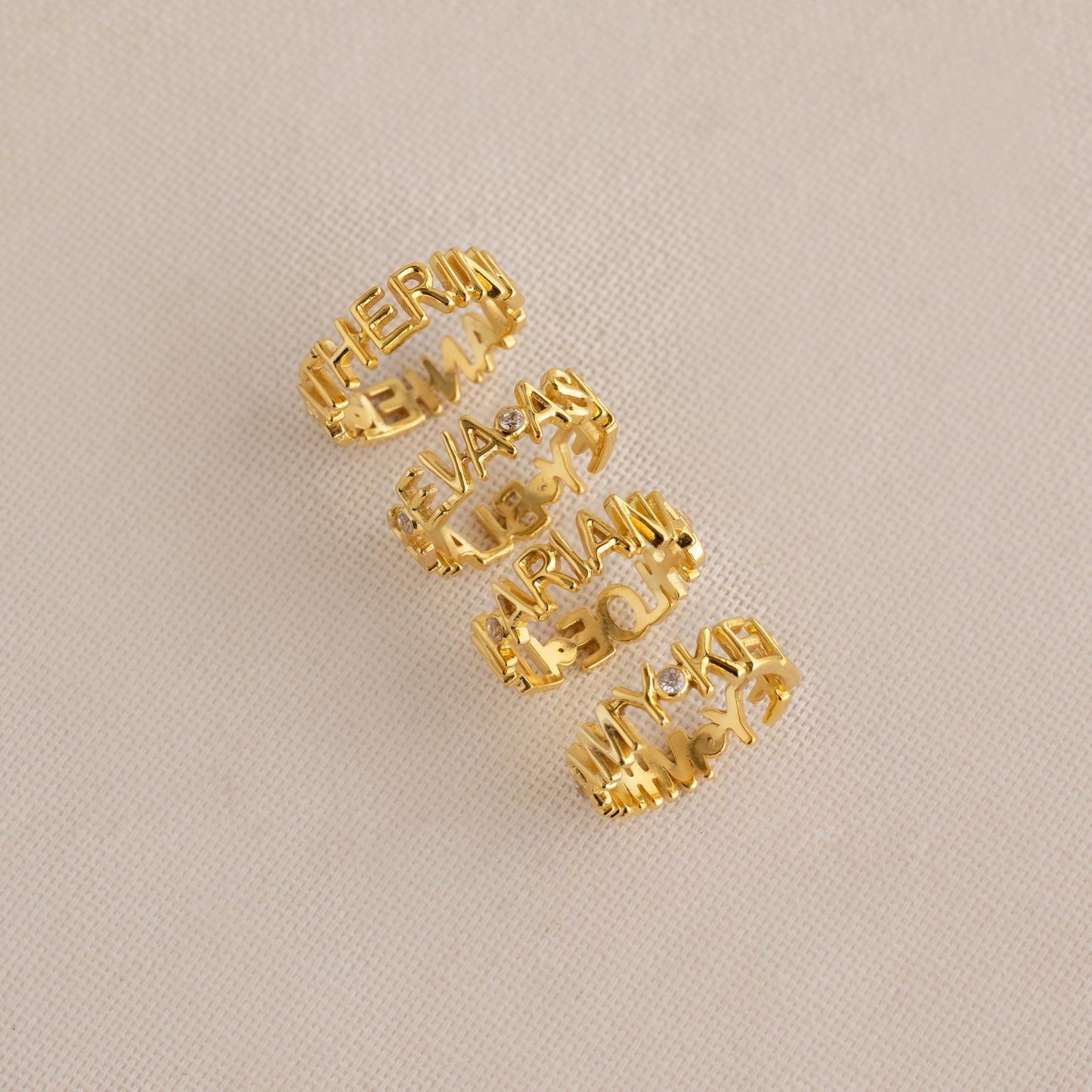 Celebrate every bond that matters with our Multiple Name Eternity Ring, where names, dates, or words are wrapped around your finger in an unbroken circle. With delicate diamond accents, this ring makes a meaningful gift for mom or treat for yourself ✨