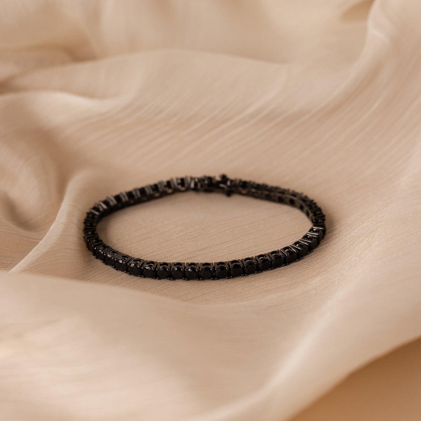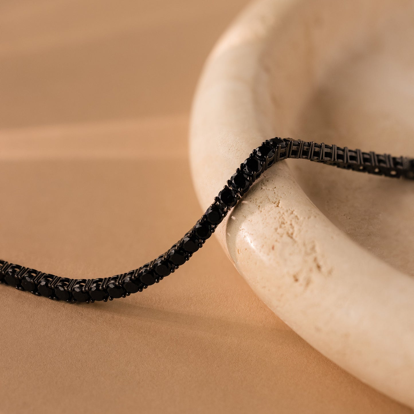 ¿Necesitas algo elegante pero atrevido para usar? ¡Lo tenemos cubierto! Nuestra pulsera de tenis de ónix es una versión única de una típica pulsera de tenis de diamantes. Con los elegantes diamantes CZ negros, puedes combinar esta pulsera con cualquier color para agregar un poco de diversión a tu atuendo o usarla sola para lograr una apariencia glamorosa sin esfuerzo.