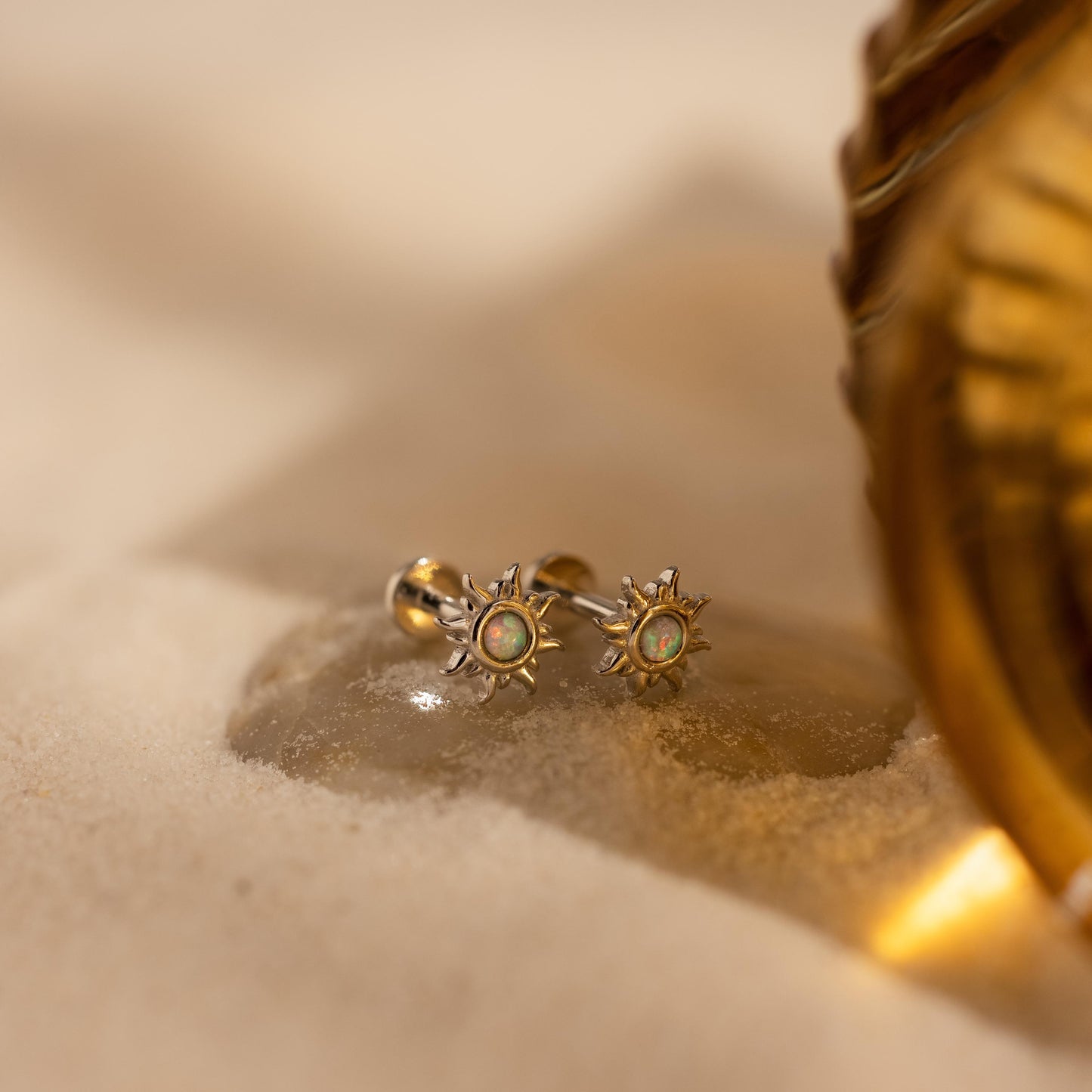Illuminate your earring stack with our Opal Sun Flat Back Studs, designed to bring a little warmth and sparkle to any look. Featuring luminous opals set in sleek bezels, these dainty studs capture the enchanting glow of the sun while adding a touch of celestial charm. Perfect for brightening up any outfit, they're a must-have for those who love a hint of magic in their everyday style.