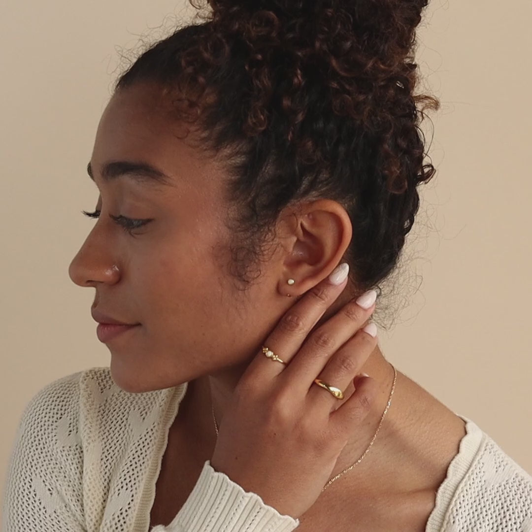 I really love these earrings. I have very sensitive ears and I've no issues with these at all. I also love the minimalist look and the fact that they stay in despite having no backs ( which is probably my favorite feature - no backs )