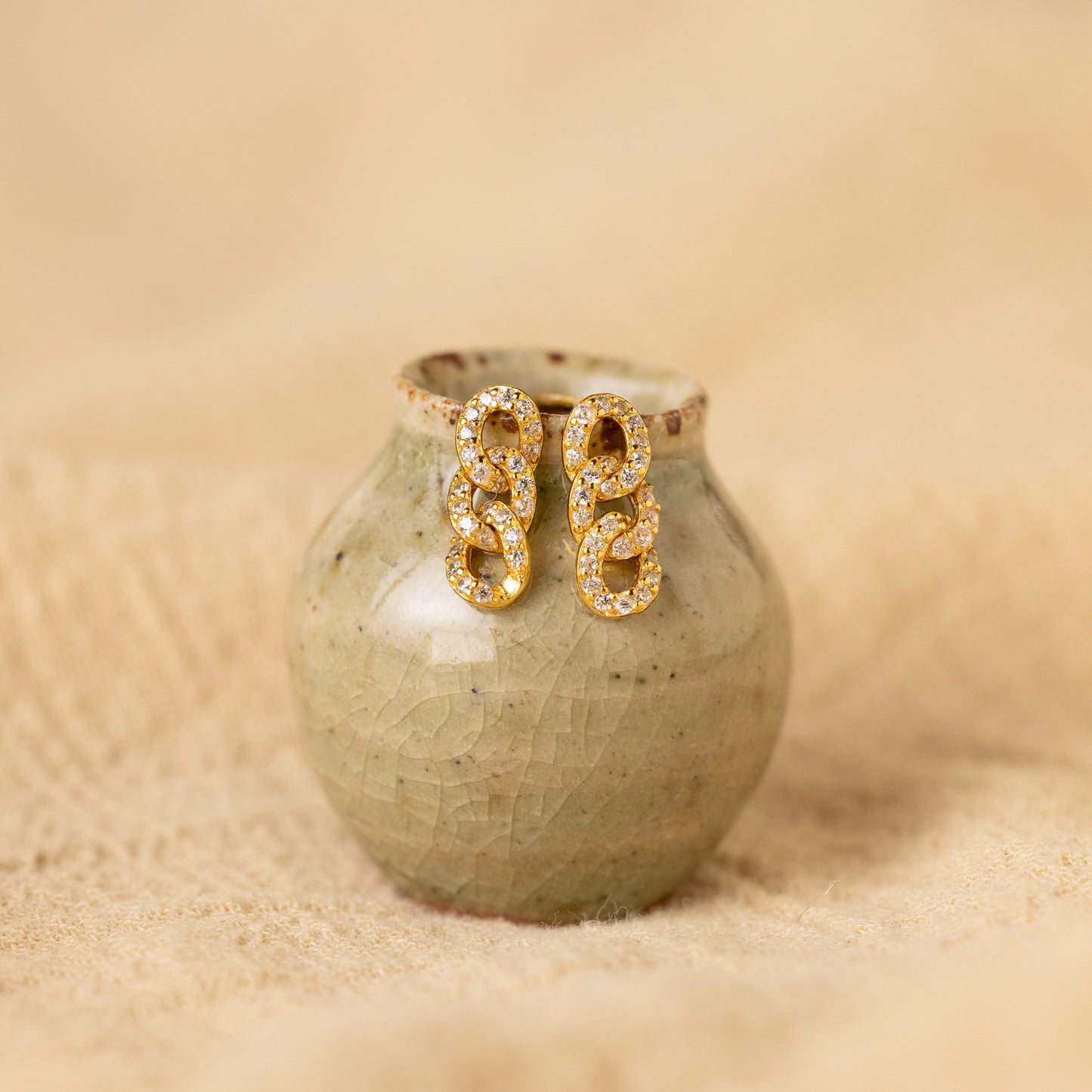 - Con aretes clásicos con eslabones entrelazados de diamantes con pavé de circonita cúbica de ~ 12,5 x 5 mm