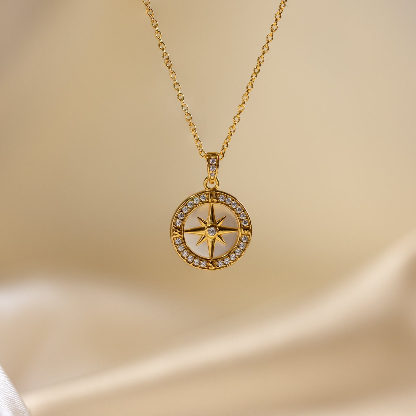 • Featuring a ~15mm Mother of Pearl Compass Pendant with CZ Diamond Gemstones on a dainty Cable Chain, adjustable from 16 to 18 inches