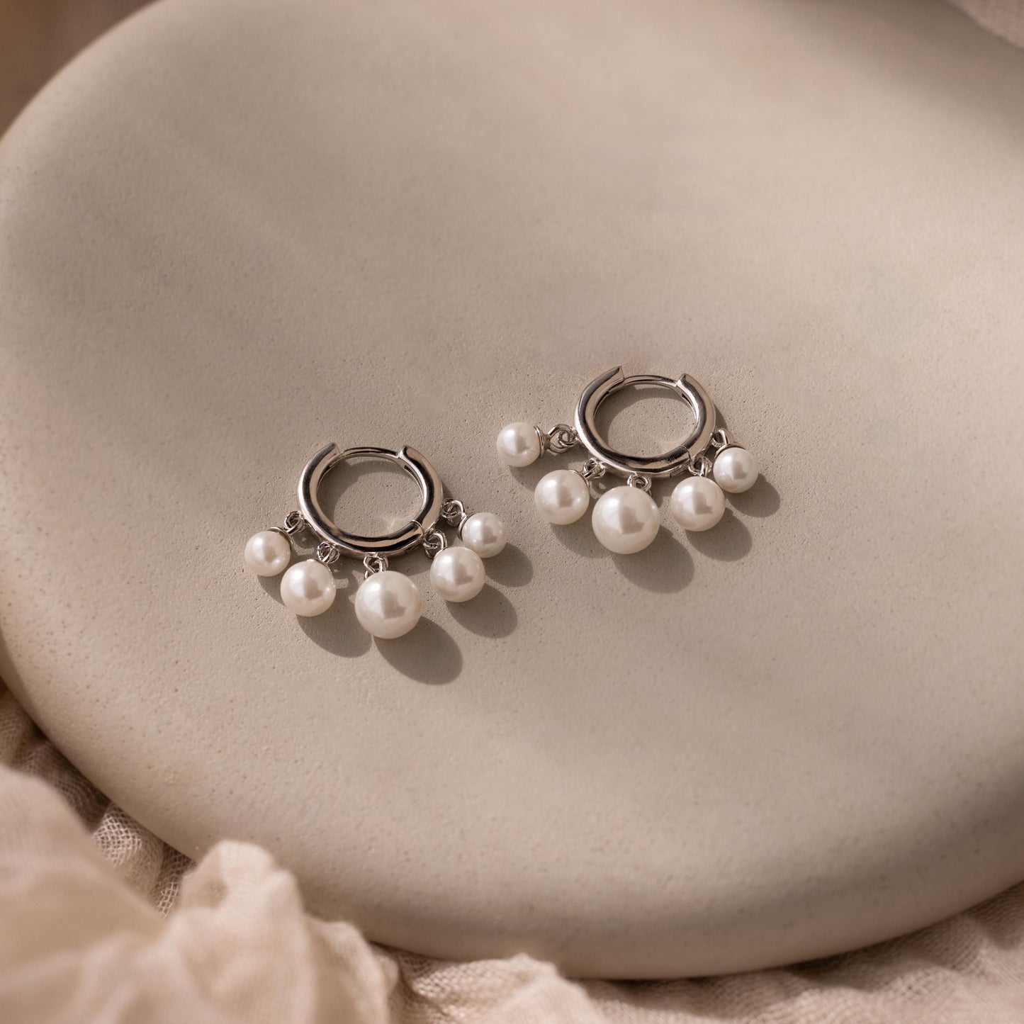 Elevate your everyday look with our Pearl Chandelier Huggies, featuring a row of lustrous pearl beads suspended from polished gold hoops. Their playful movement and timeless charm make them perfect for both special occasions and statement styling ♡