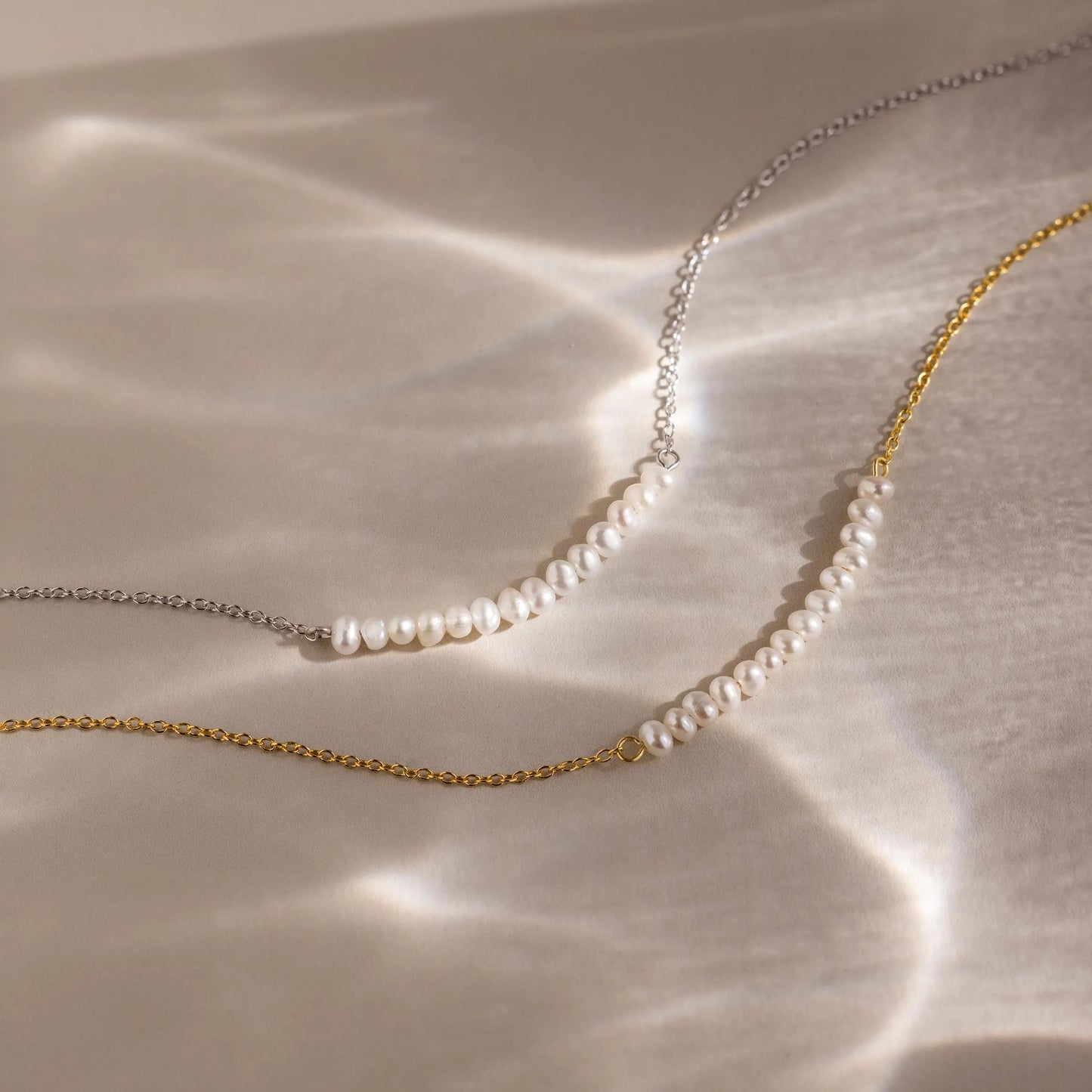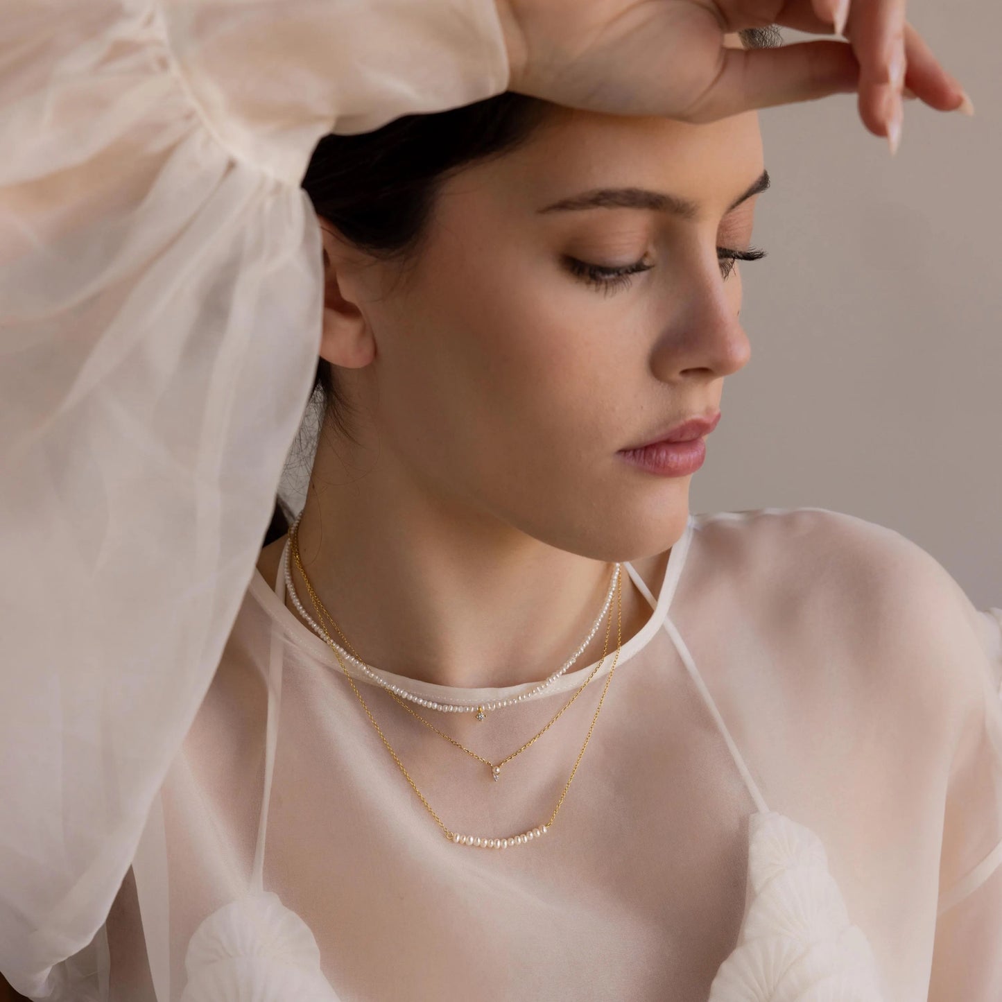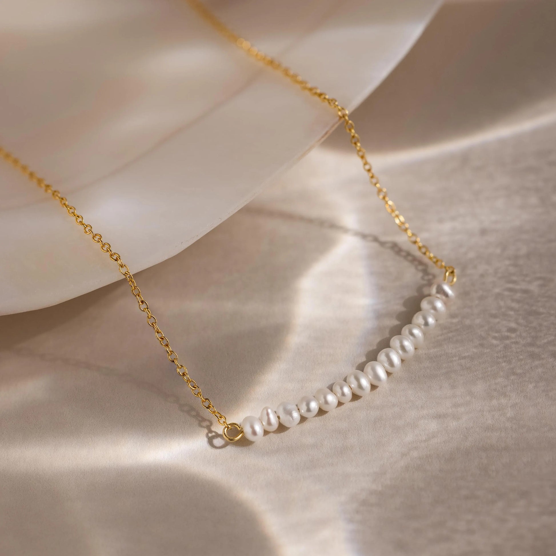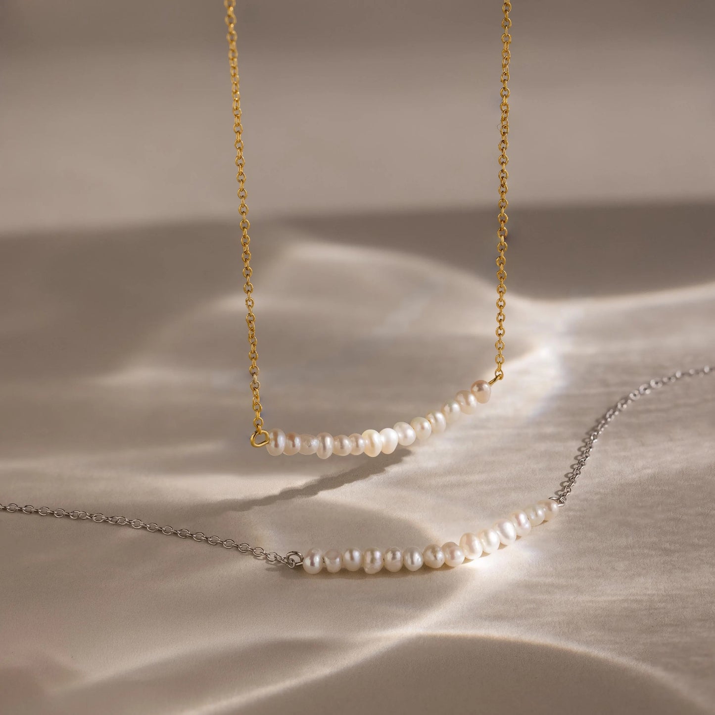 Perfect for layering or wearing solo, our Pearl Curve Necklace is lightweight, timeless and effortlessly chic. A graceful piece for anyone in your bridal party or even add it to your own wedding jewelry ensemble. Featuring lustrous Pearl gemstones strung along a delicate chain, this necklace is understated while retaining its sophistication.