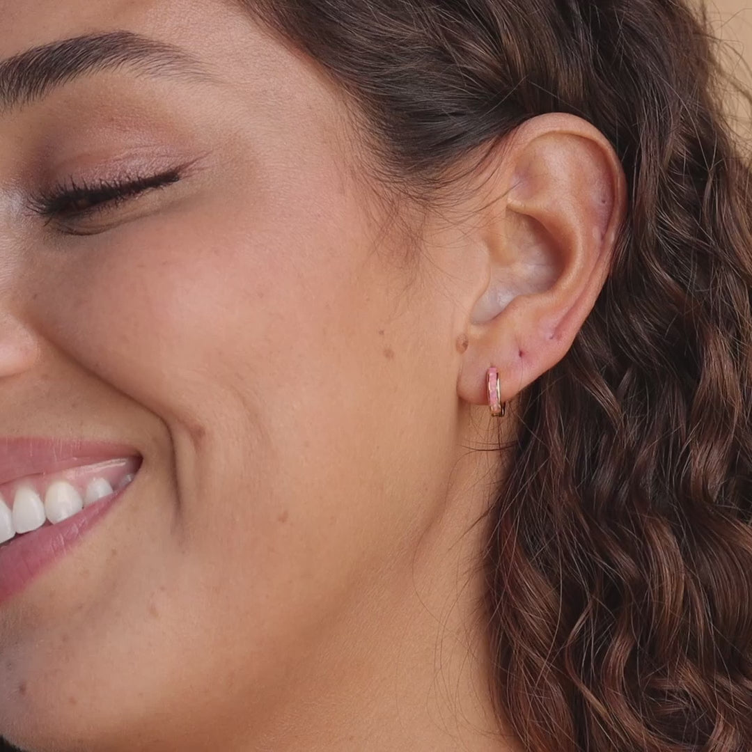 Huggies con incrustaciones de ópalo rosa