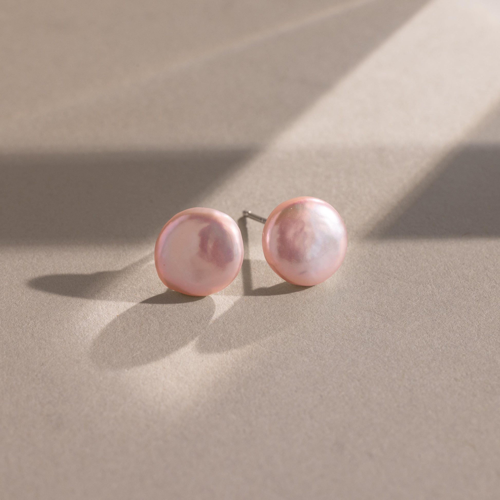 These pearl earrings are a light pink and very well made. Great pair of medium size studs.