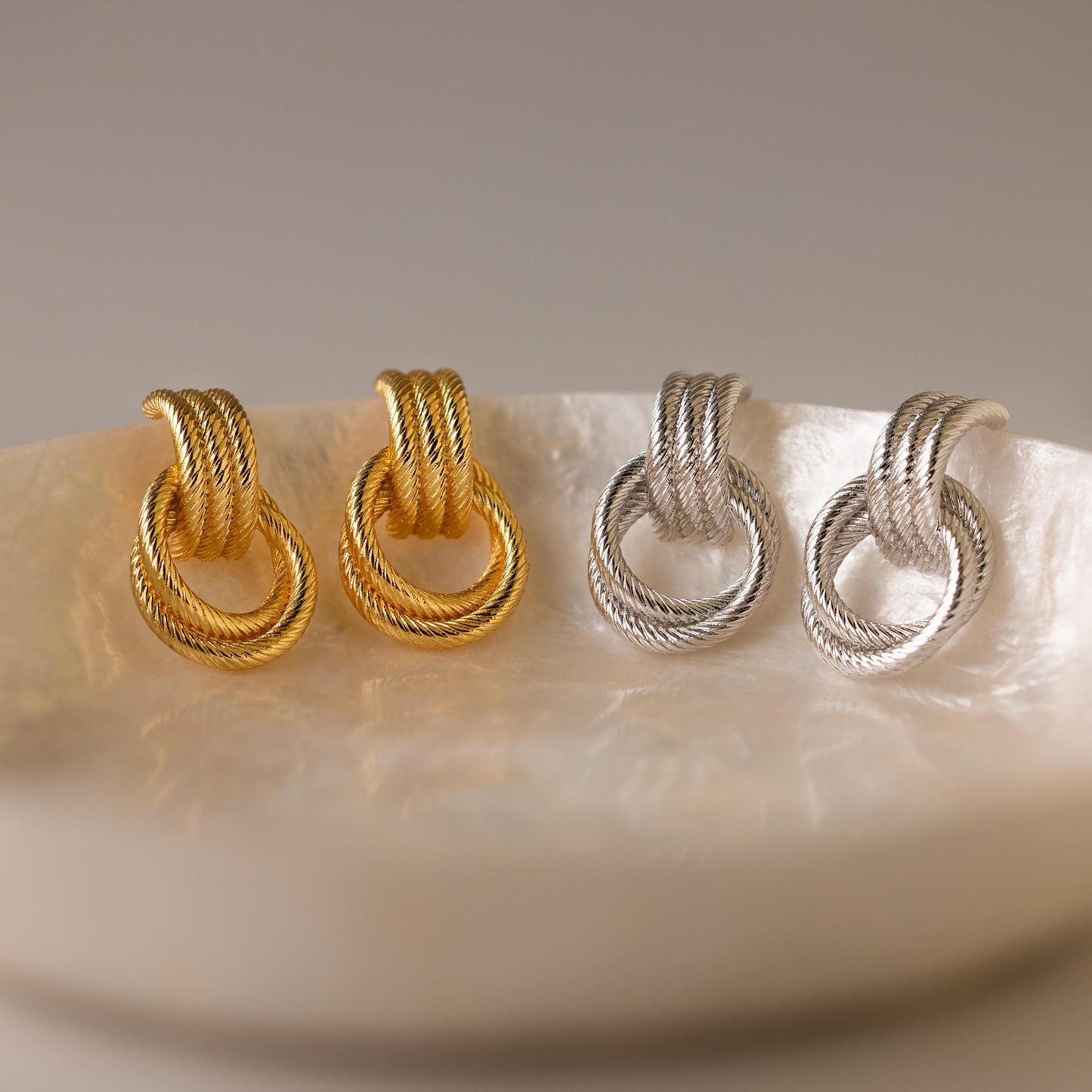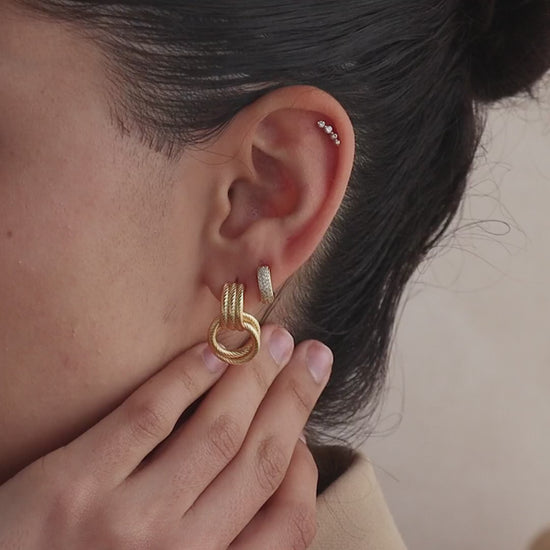 Bold yet refined, our Ribbed Duo Knot Earrings blend texture and shine in perfect harmony. The ribbed stud flows with the dangling knot hoop, creating a look that feels both classic and modern. A statement piece with a dreamy glow ✨