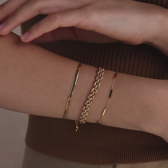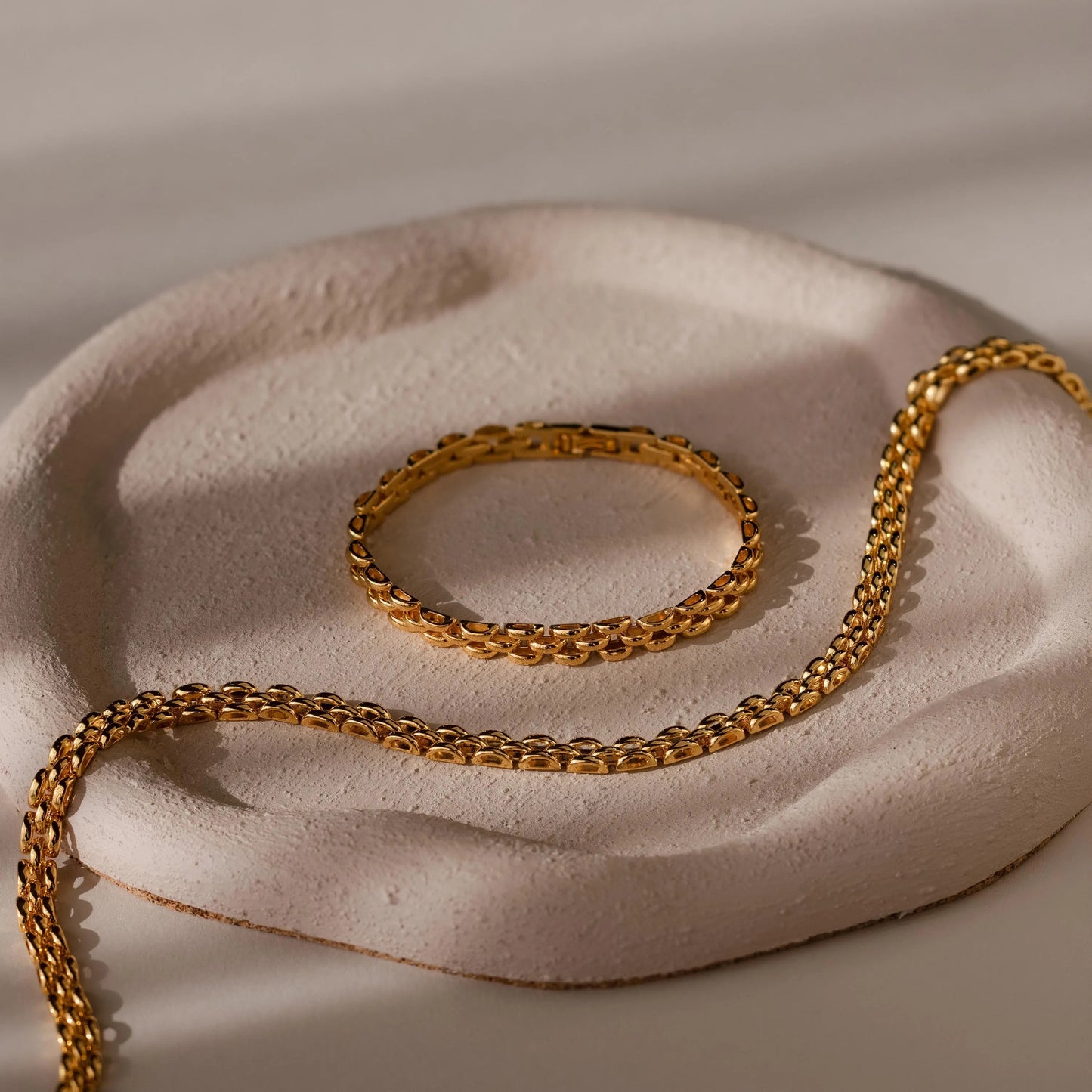 Our Strap Bracelet, also known as a Panther Chain Bracelet, is the definition of a statement piece. With its fluid, interlocking links and shine, this eye-catching bracelet band brings a touch of bold radiance to any look ✨