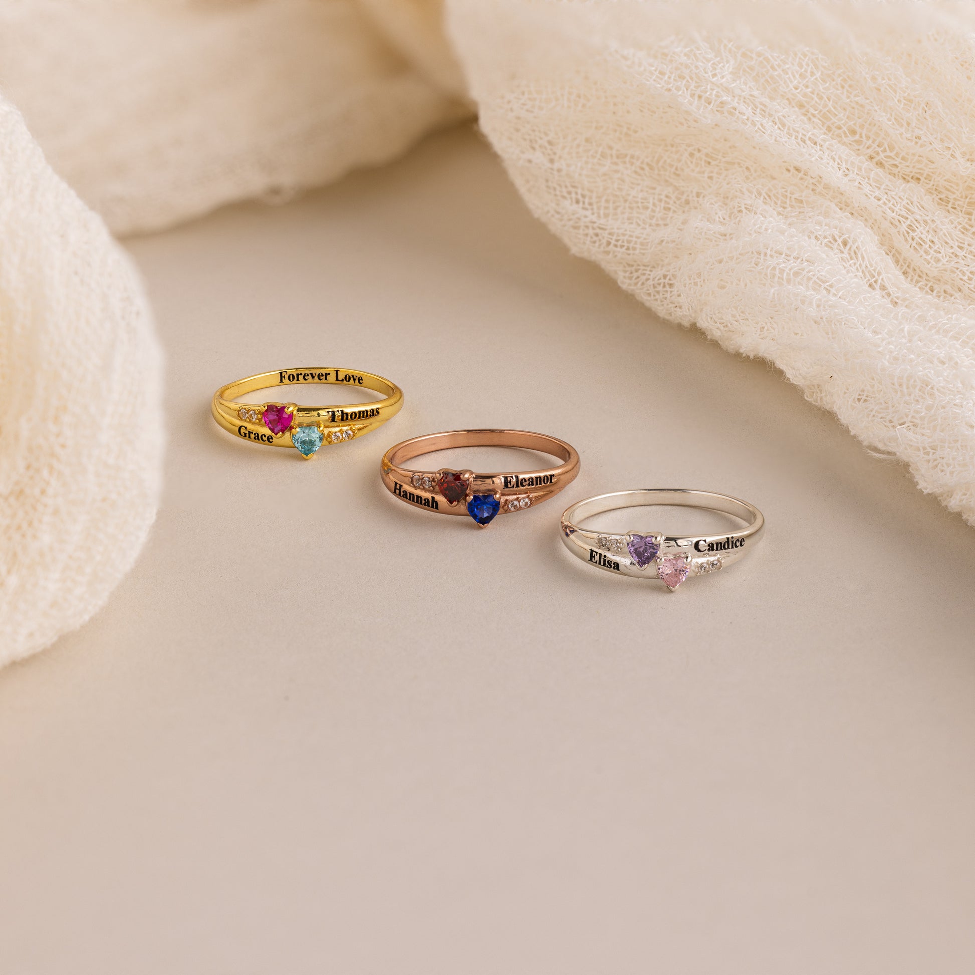 Celebrate your unique bond with our Toi et Moi Interlocking Name Ring, featuring two custom names and sparkling birthstones of your choice. Personalize it with engraved names and birthstones to create a meaningful piece that’s all yours.