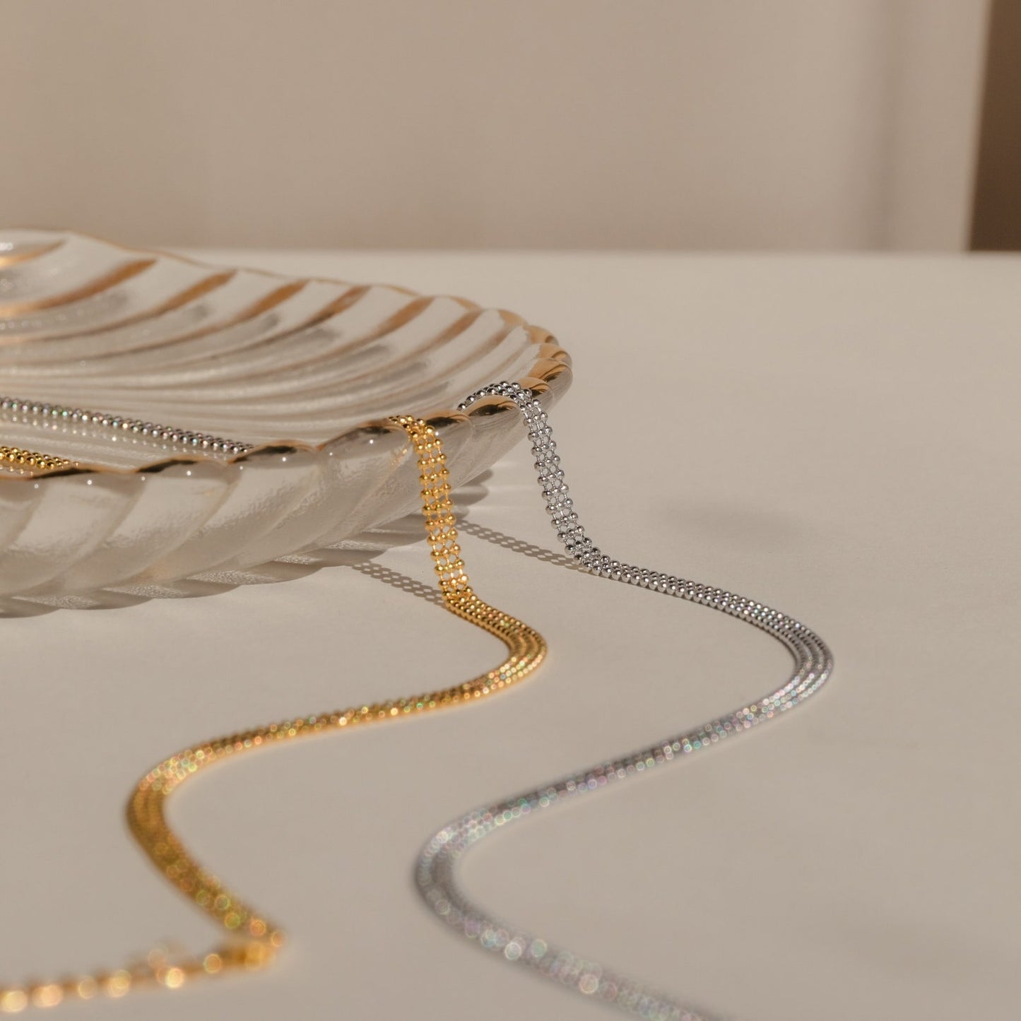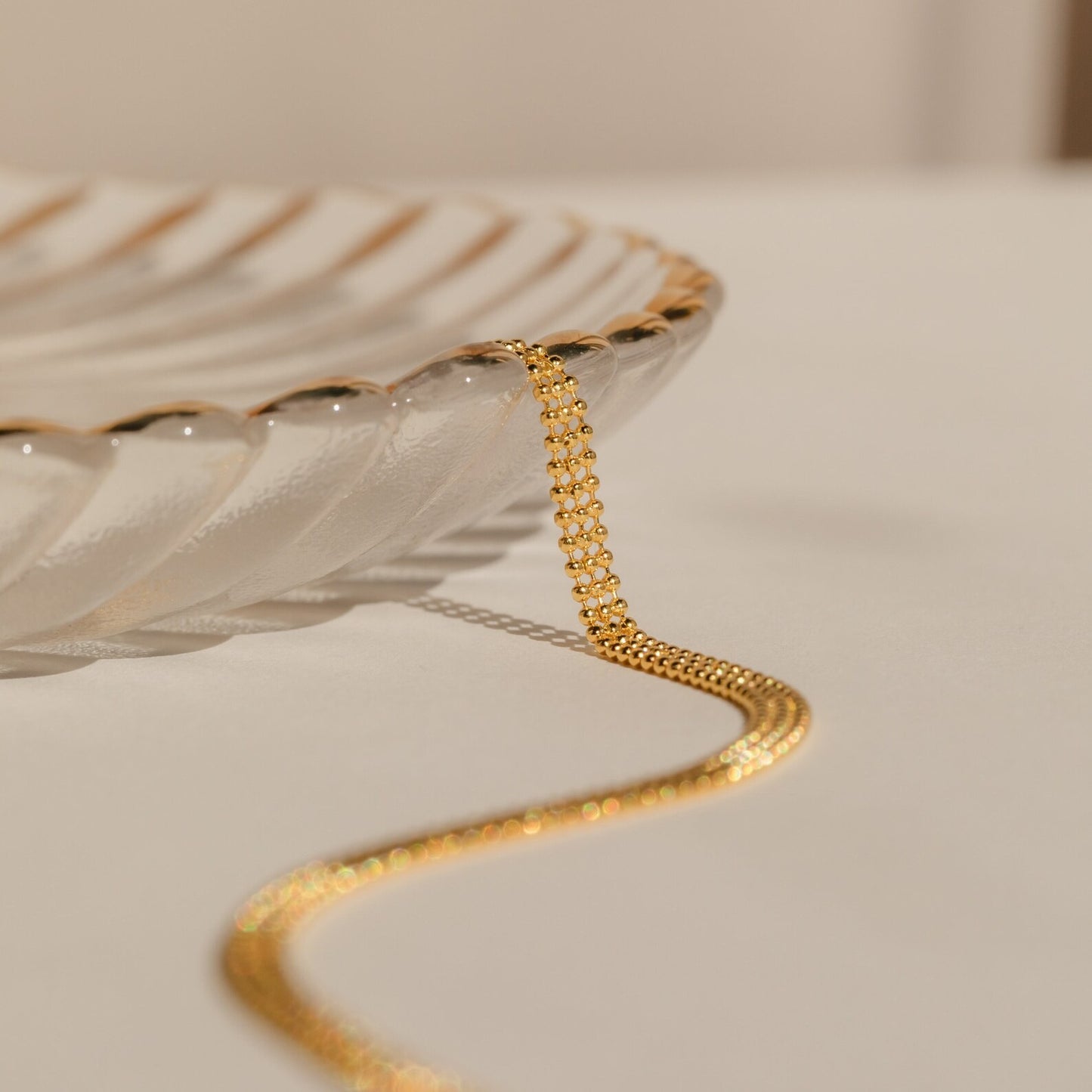 • Featuring ~3.5mm Tri-stacked Beaded Chain, adjustable from 16 inches to 18 inches
