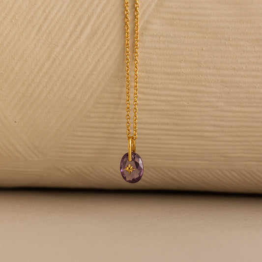 Collier chevalière avec pierre de naissance North Star en améthyste