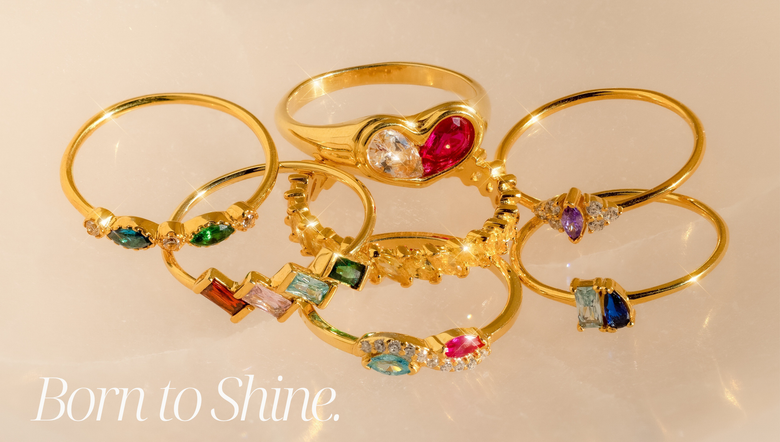 Bague chevalière en forme de cœur avec deux pierres de naissance