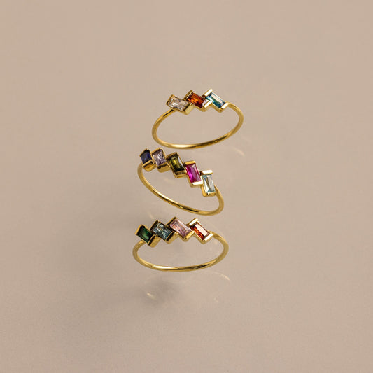 Bague à plusieurs pierres de naissance baguettes