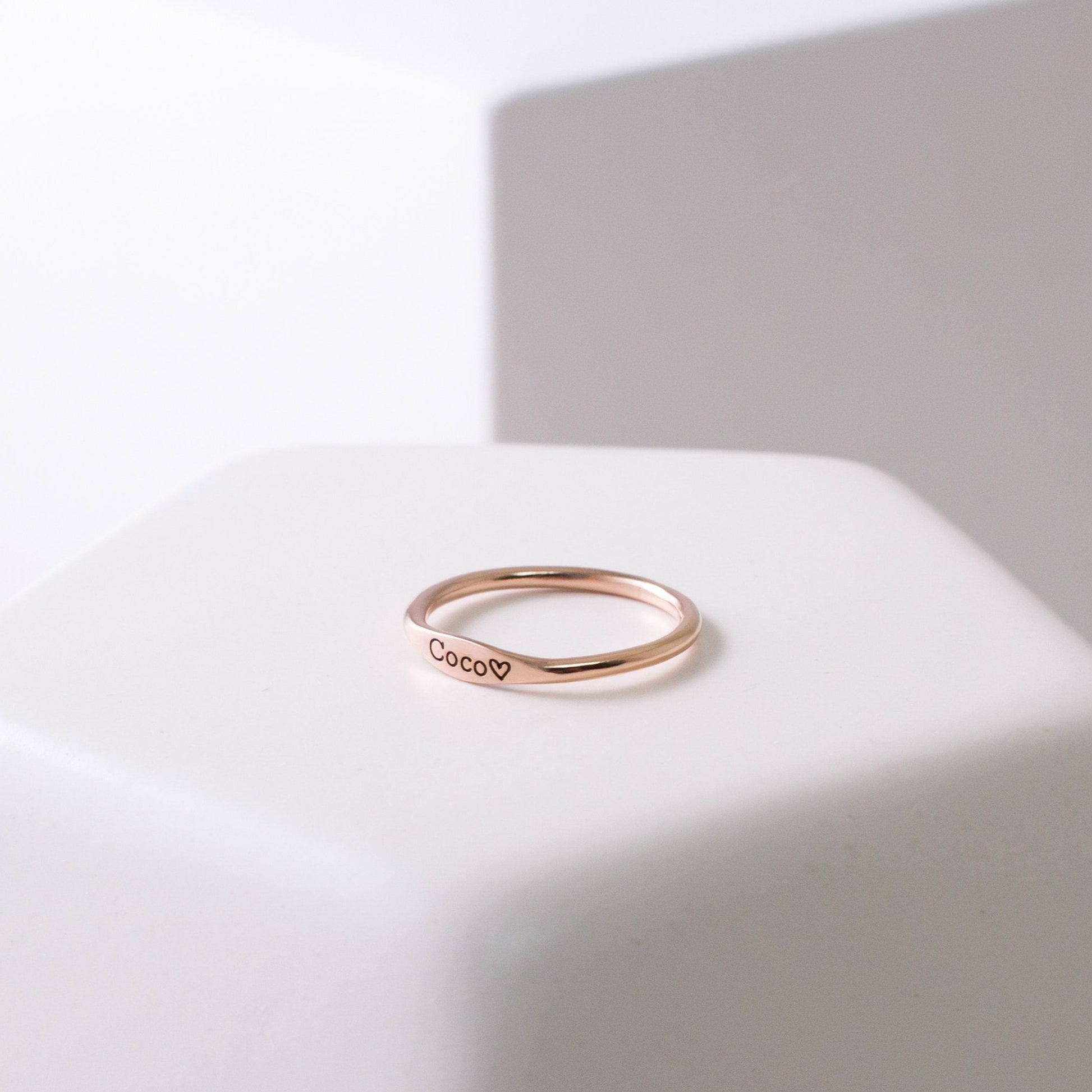 Notre bague fine personnalisée est idéale pour ajouter une touche personnelle discrète à n'importe quelle tenue. Personnalisez-la avec quelques prénoms de vos proches, ou même les mots de votre citation préférée, pour créer une collection à la fois élégante et unique !