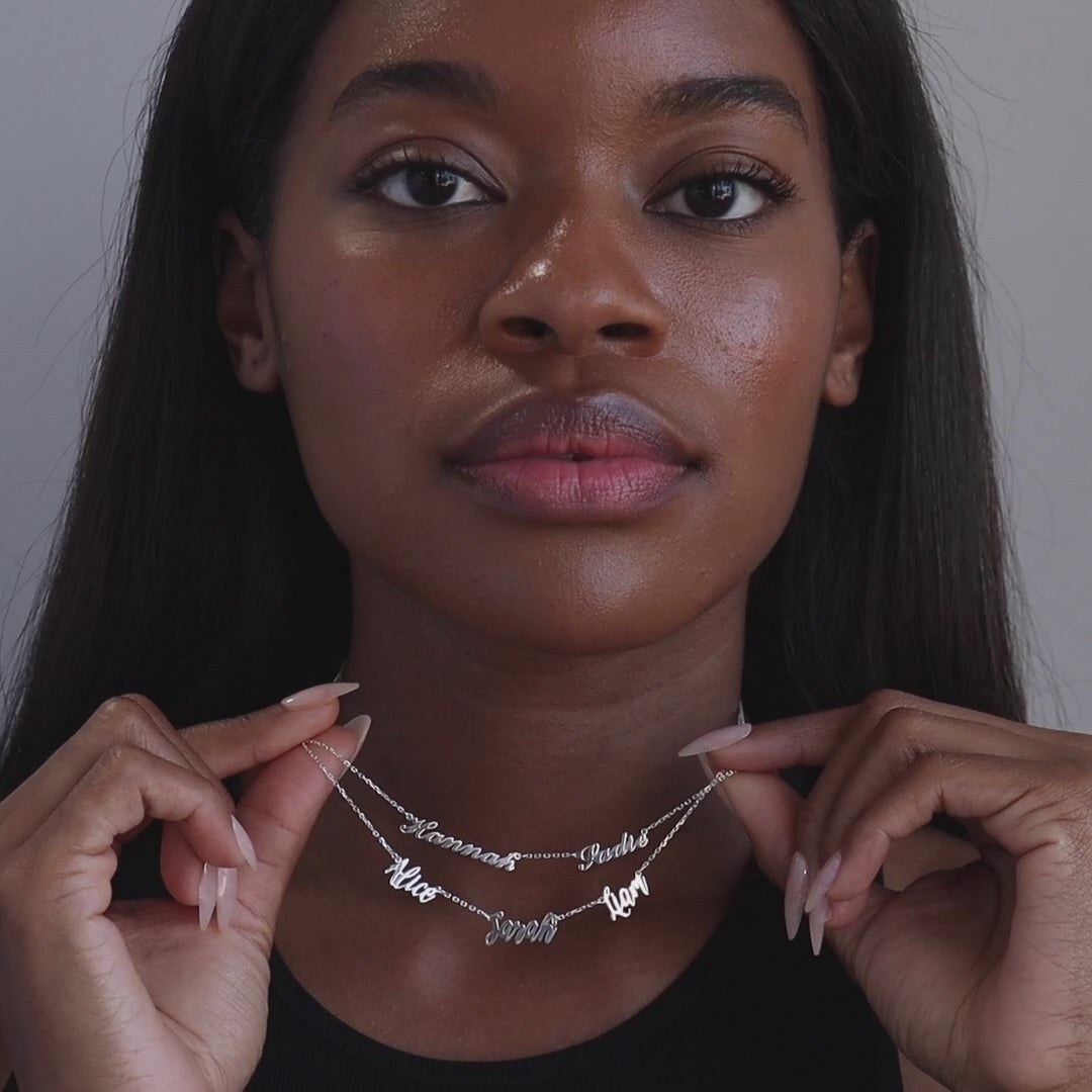 The Carrie Script Multiple Name Necklace doesn't force you to choose one name to personalize with. Intertwine three special names on this dainty chain, to represent the ones you love through a piece of stunning jewelry.