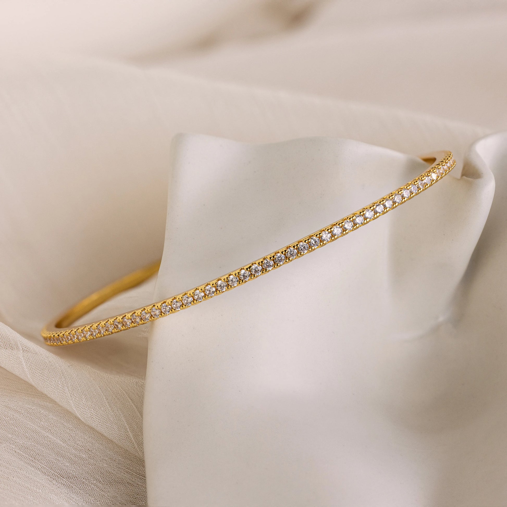 - Bracelet jonc en diamant d'environ 2,5 mm de large avec pierres pavées de diamants CZ