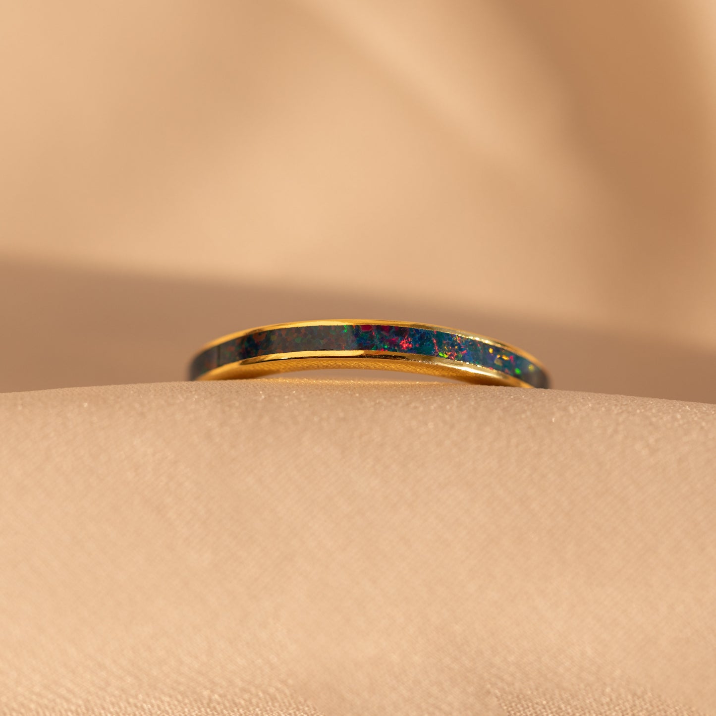 Rehaussez votre style avec notre bague incrustée d'opale bleue, une pièce d'inspiration vintage dotée d'une incrustation d'opale bleu profond qui entoure gracieusement la bande ♡ Cette bague d'éternité élégante et minimaliste met non seulement en valeur les propriétés uniques de l'opale, mais offre également des possibilités d'empilage infinies, ce qui en fait un ajout polyvalent et intemporel à votre collection de bijoux.