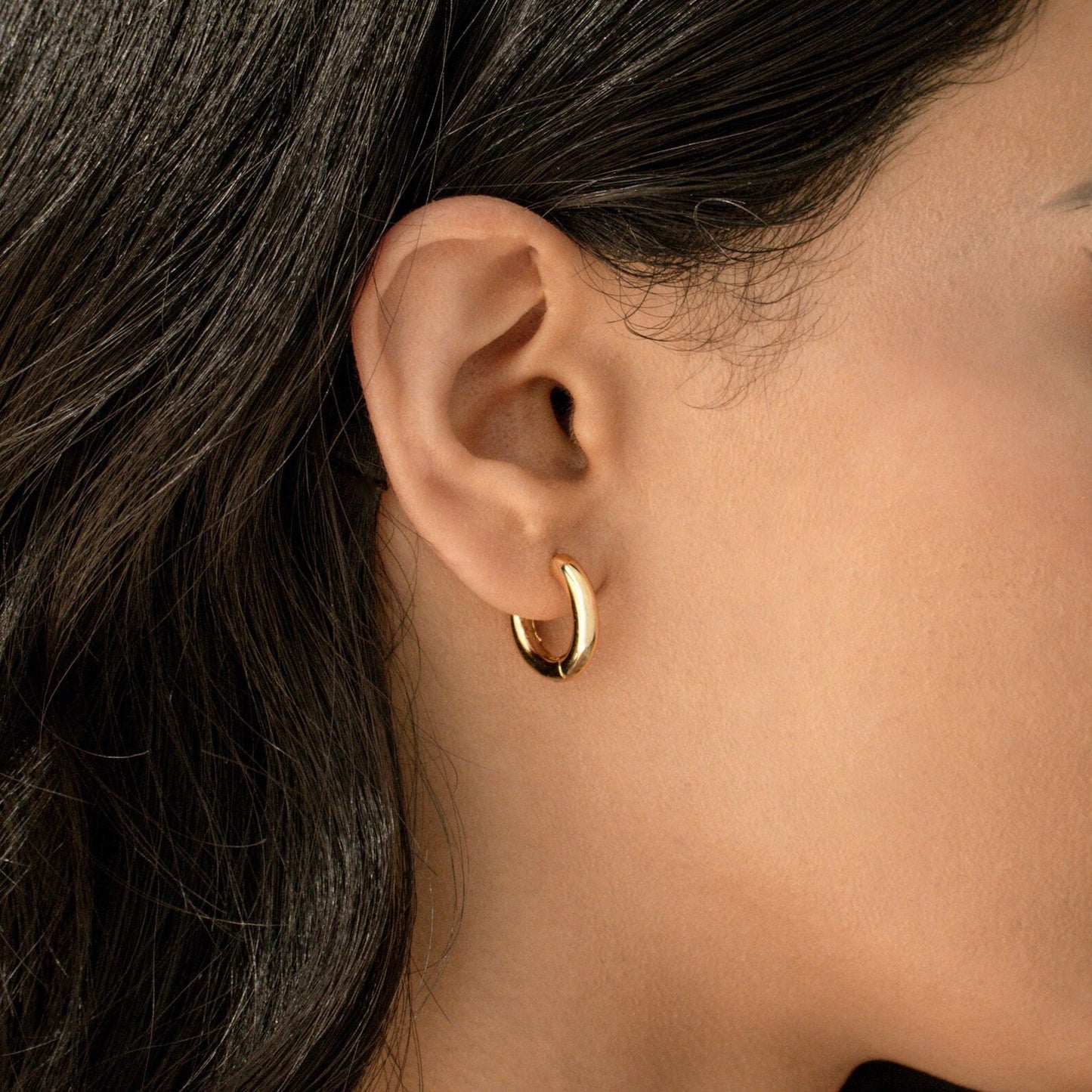 These are the perfect everyday chunky hoop! Especially when paired with my CM small bold hoops in my double piercings... great way to style a casual outfit! I also workout, shower, and sleep in these and they never tarnish! :D