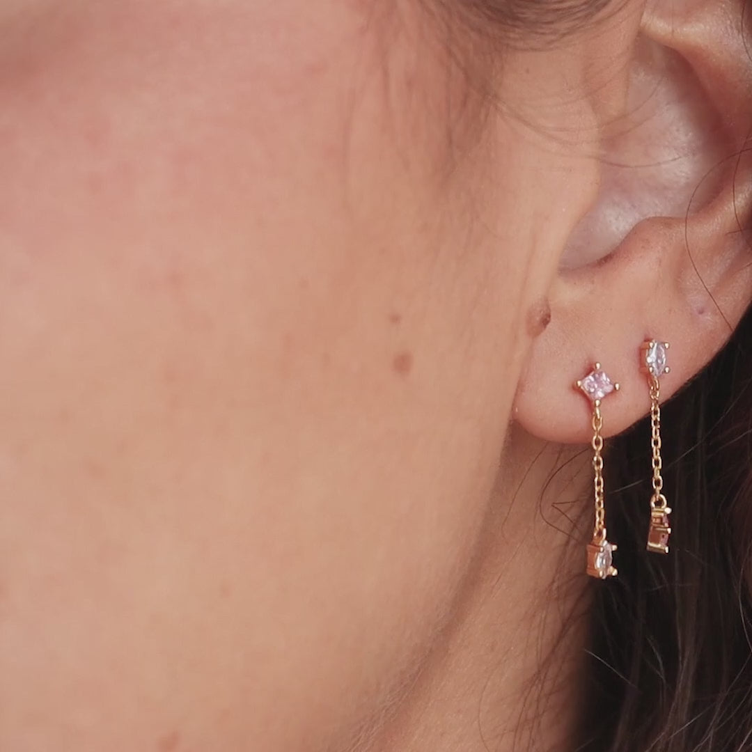 I've had these for a few weeks now, and enjoy wearing them a lot. I like that they're not egregious in size, but still have some length that makes me feel pretty when they dangle together. My ears tend to be sensitive to jewelry, but I haven't had any problems with irritation so far. The only critique I have of the earrings is more so just a comment for other buyers to consider. Sometimes, I feel the chain that dangles can get notched into a certain position, so the stone on the post is facing the correct way, while the stone that is dangling is facing a completely different direction.