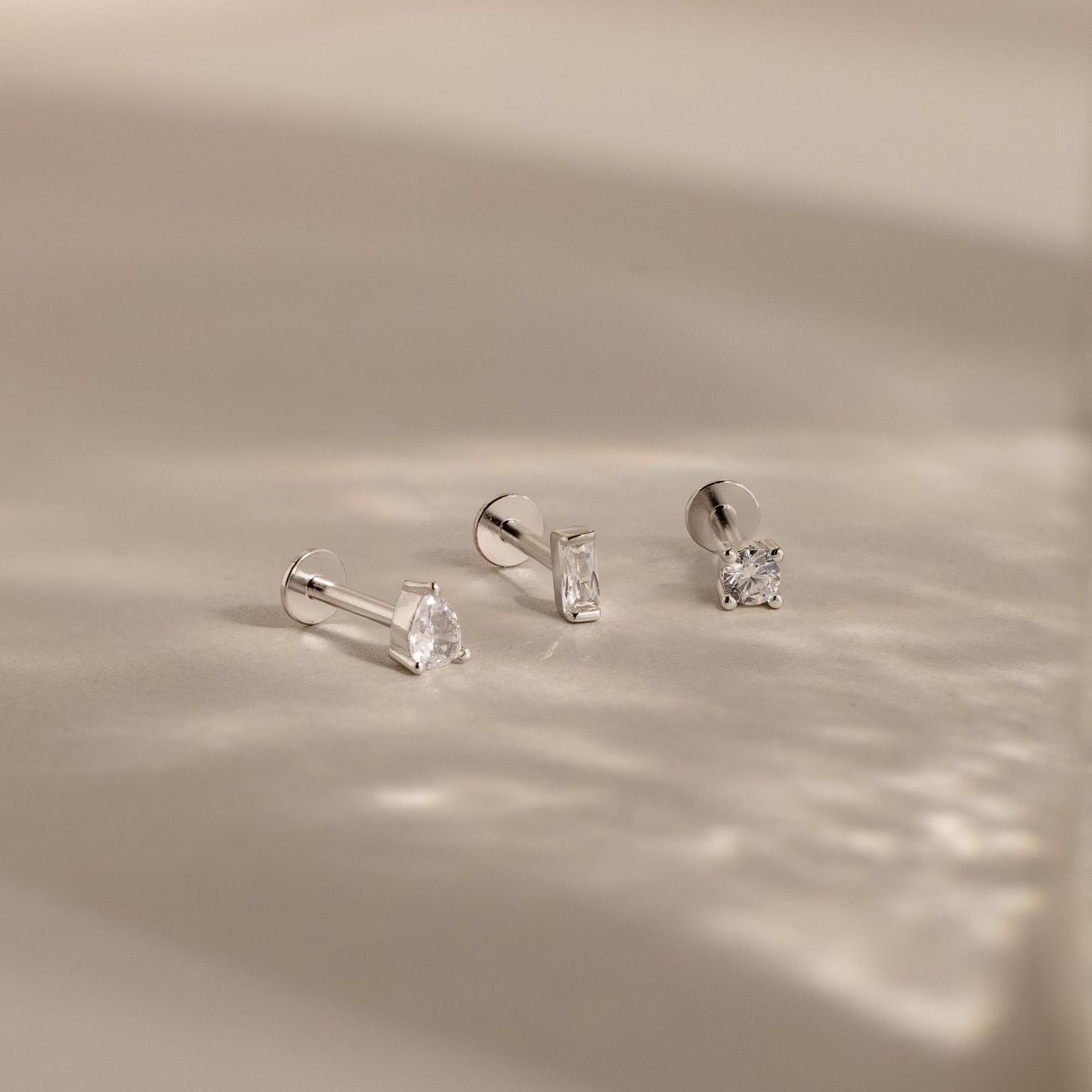 • Featuring a Set of 3 CZ Diamond Flat-back Stud Earrings: