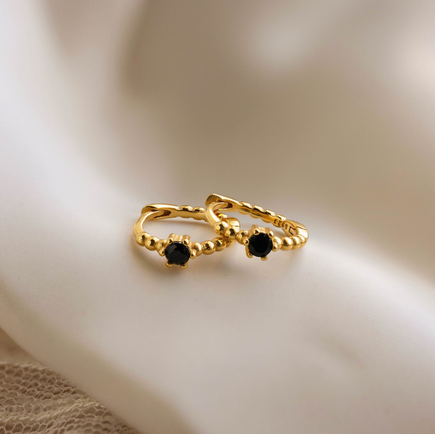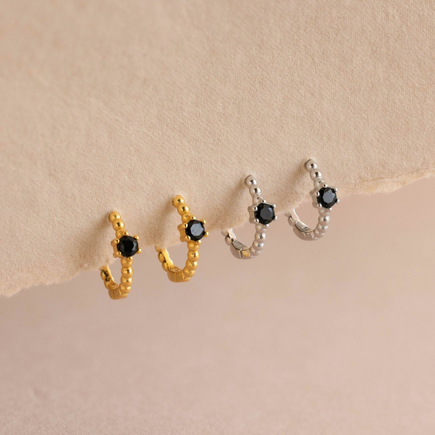 - Boucles d'oreilles créoles perlées avec pierre précieuse en onyx noir CZ d'environ 3 mm