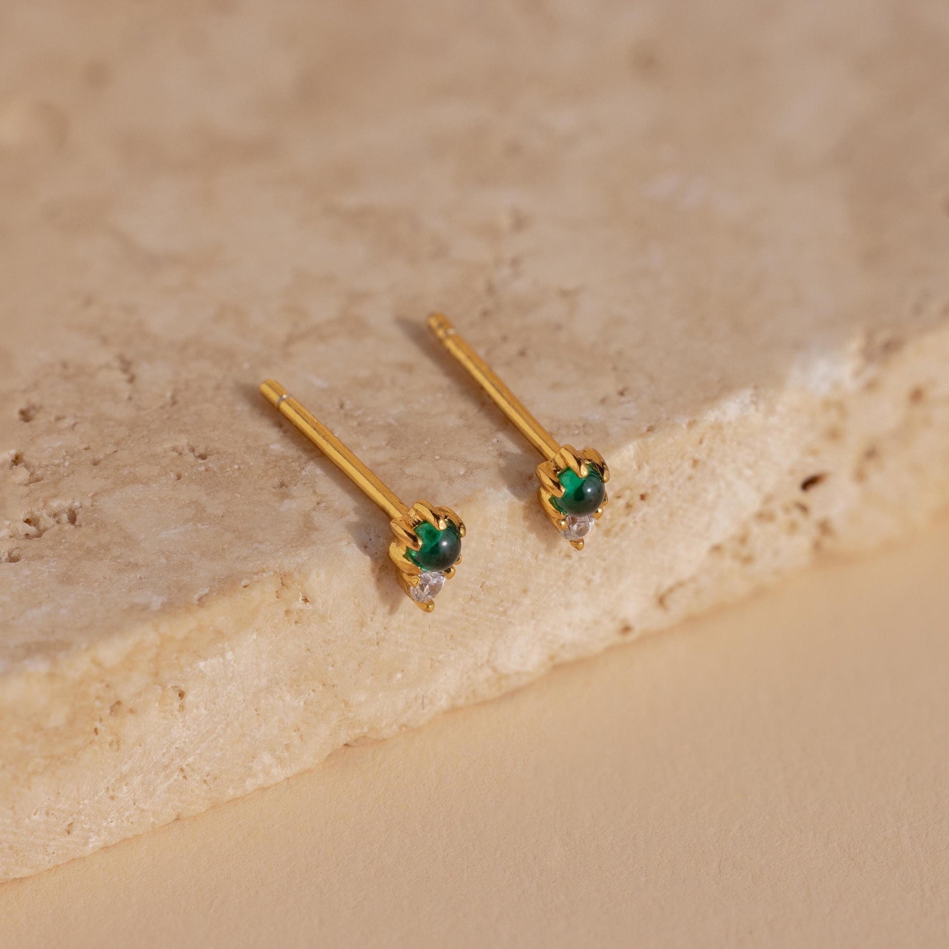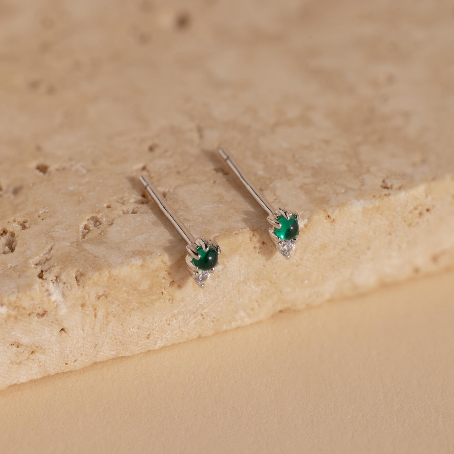 - Boucles d'oreilles à tige délicates avec jade CZ d'environ 2,5 mm et diamant CZ d'environ 2 mm | Calibre : 22