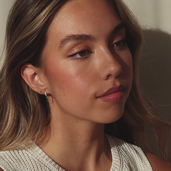 - Le modèle présente un look quotidien dynamique et tendance avec nos Huggies Raine Emerald Dagger et notre bague Space Marquise Birthstone .
