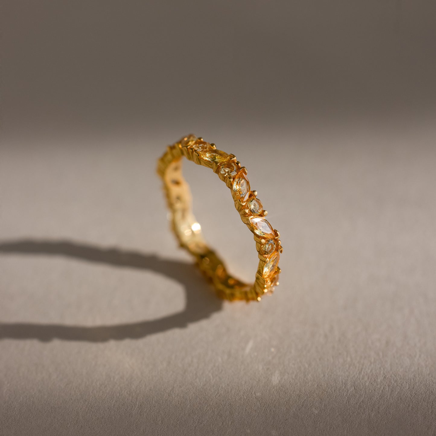 D'une délicatesse éclatante, notre bague Topaze Marquise Décalée est ornée d'un anneau d'éternité intemporel, alternant pierres taille marquise et taille ronde. Idéale comme alliance, cadeau de demoiselle d'honneur ou tout simplement pour vous faire plaisir, c'est un souvenir intemporel conçu pour scintiller sous tous les angles ✨