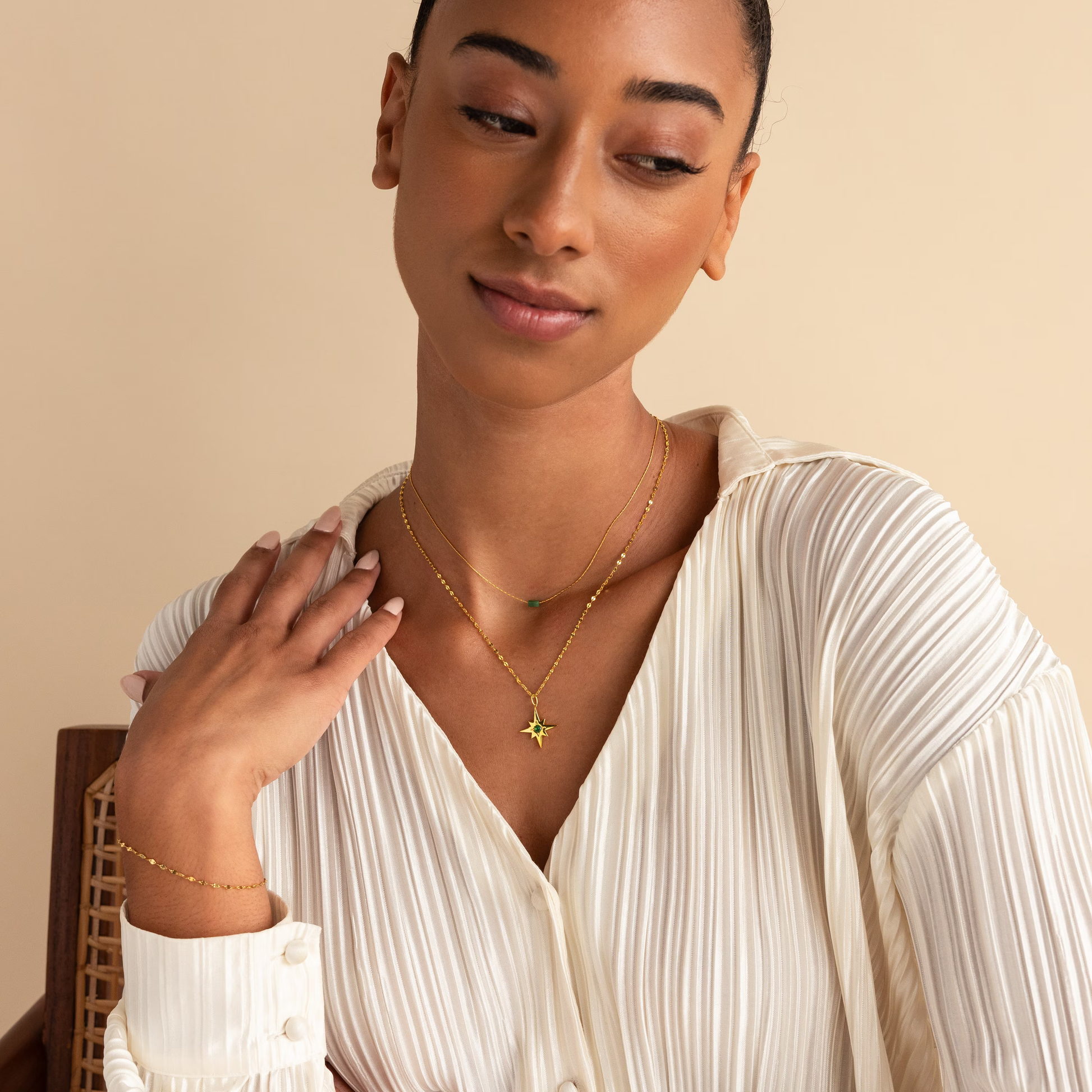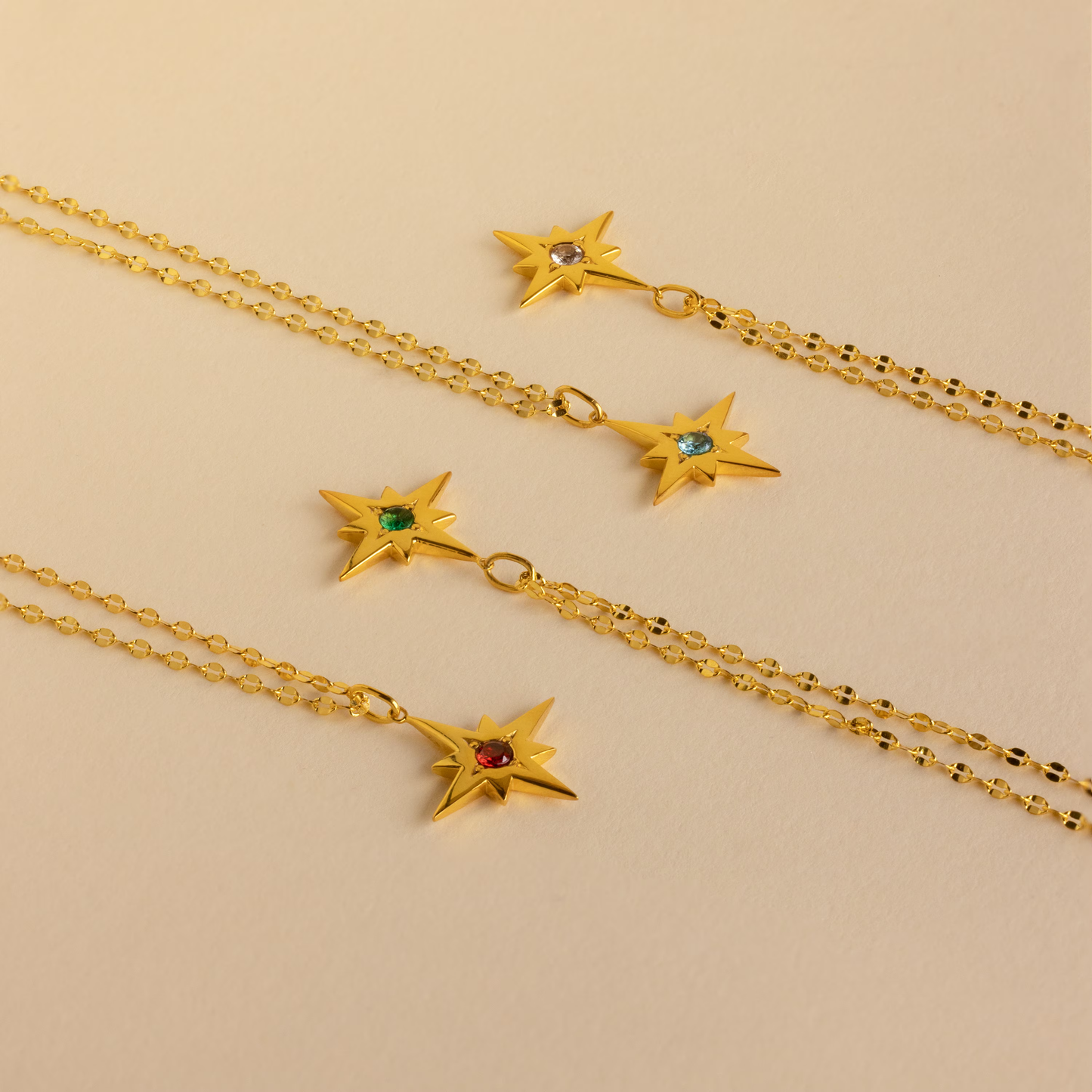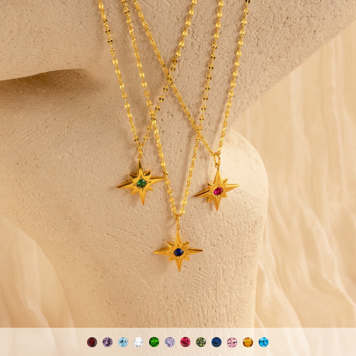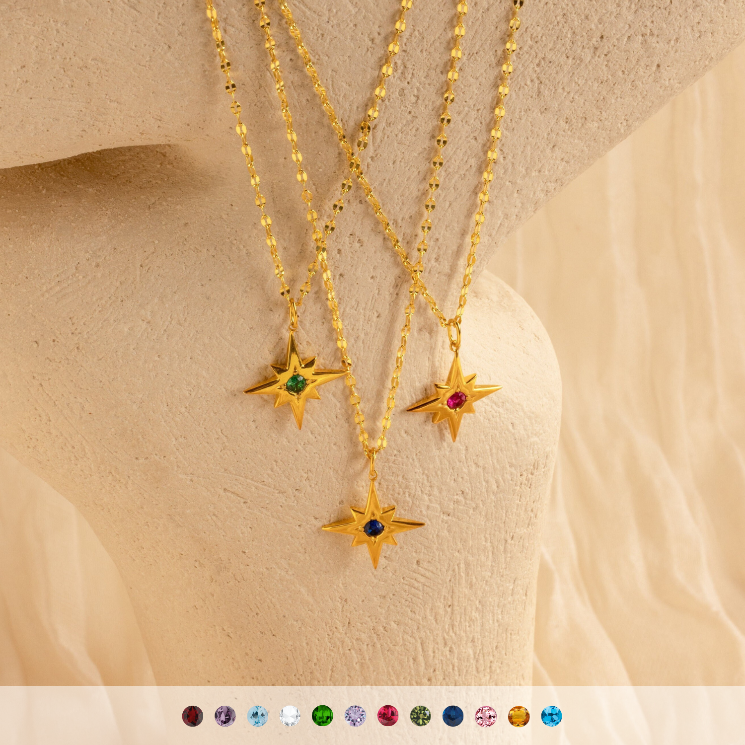 Notre collier de pierre de naissance étoile est un magnifique bijou céleste qui vous permet de choisir votre propre pierre précieuse pour briller au centre, ce qui la rend unique. C'est le cadeau parfait et personnalisé, que ce soit pour vous-même ou pour un proche !