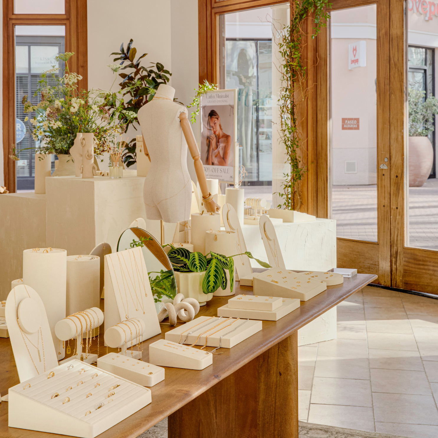 Step into our stores and experience the heart of our brand. Each space is thoughtfully designed to reflect its community, blending our signature minimalist jewelry with handpicked ceramics, local art, and natural elements. Every piece captures our passion for timeless design and meaningful details.